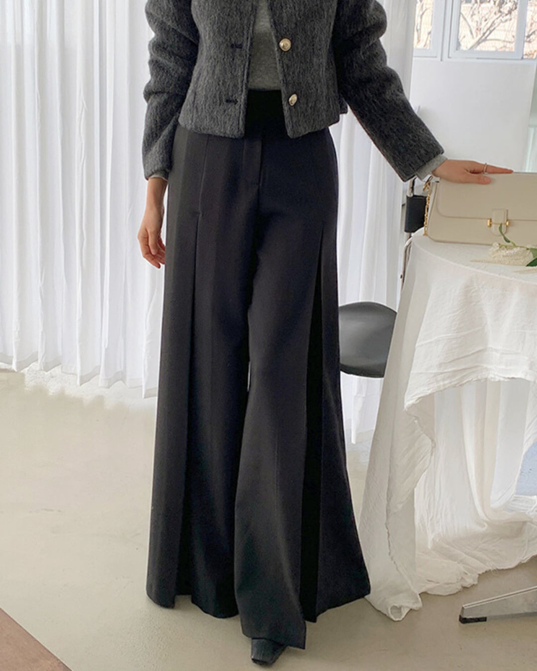 High-waisted Center Press Full Length Wide Pants S00085