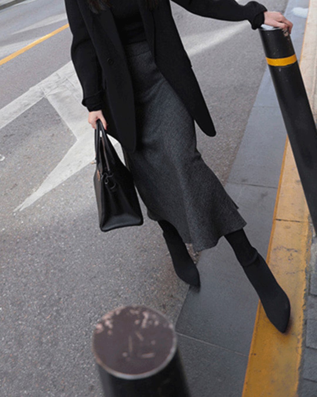 上品なシルエットで、オフィススタイルにもカジュアルスタイルにも対応可能です。
