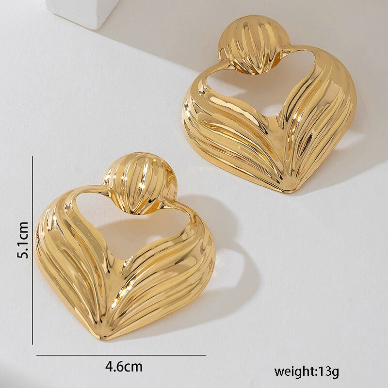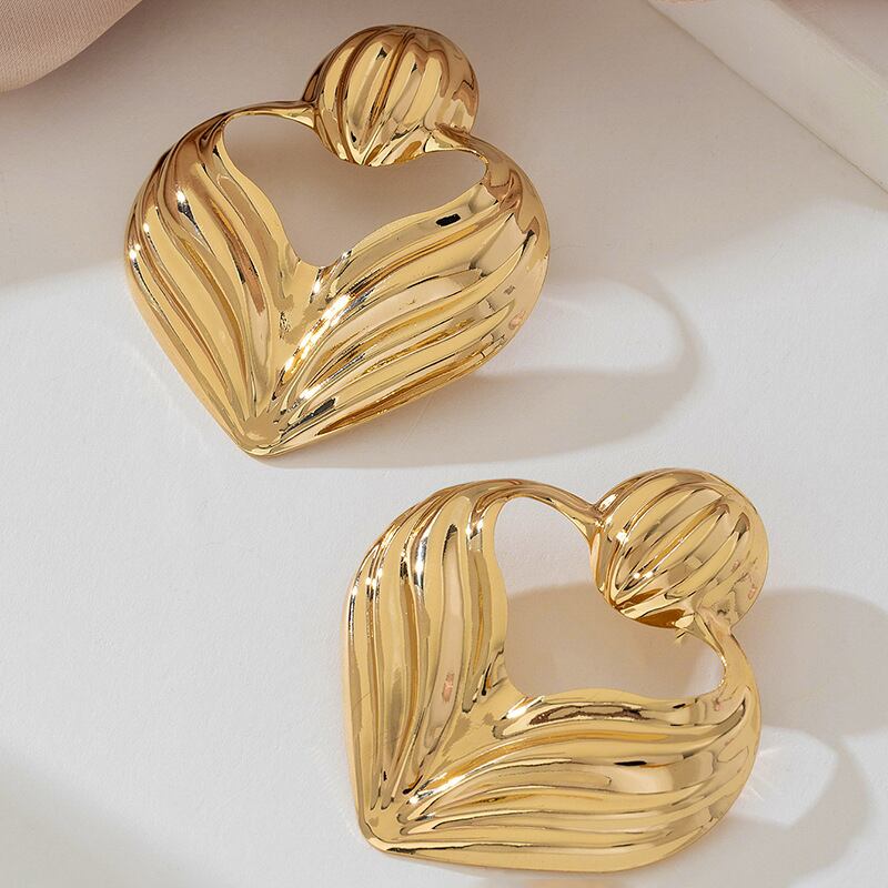 大胆なハートシェイプとフリルデザインが目を惹く、存在感抜群のピアス。