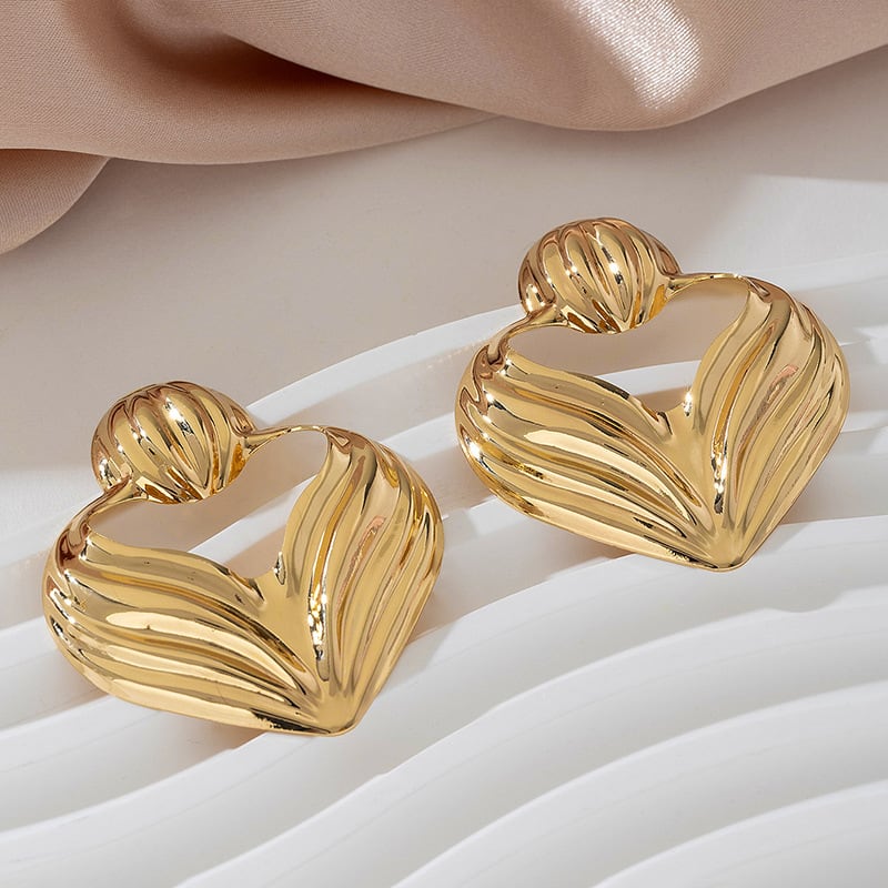 Metal Material Heart Shaped Frill Design Drop Earrings S00167