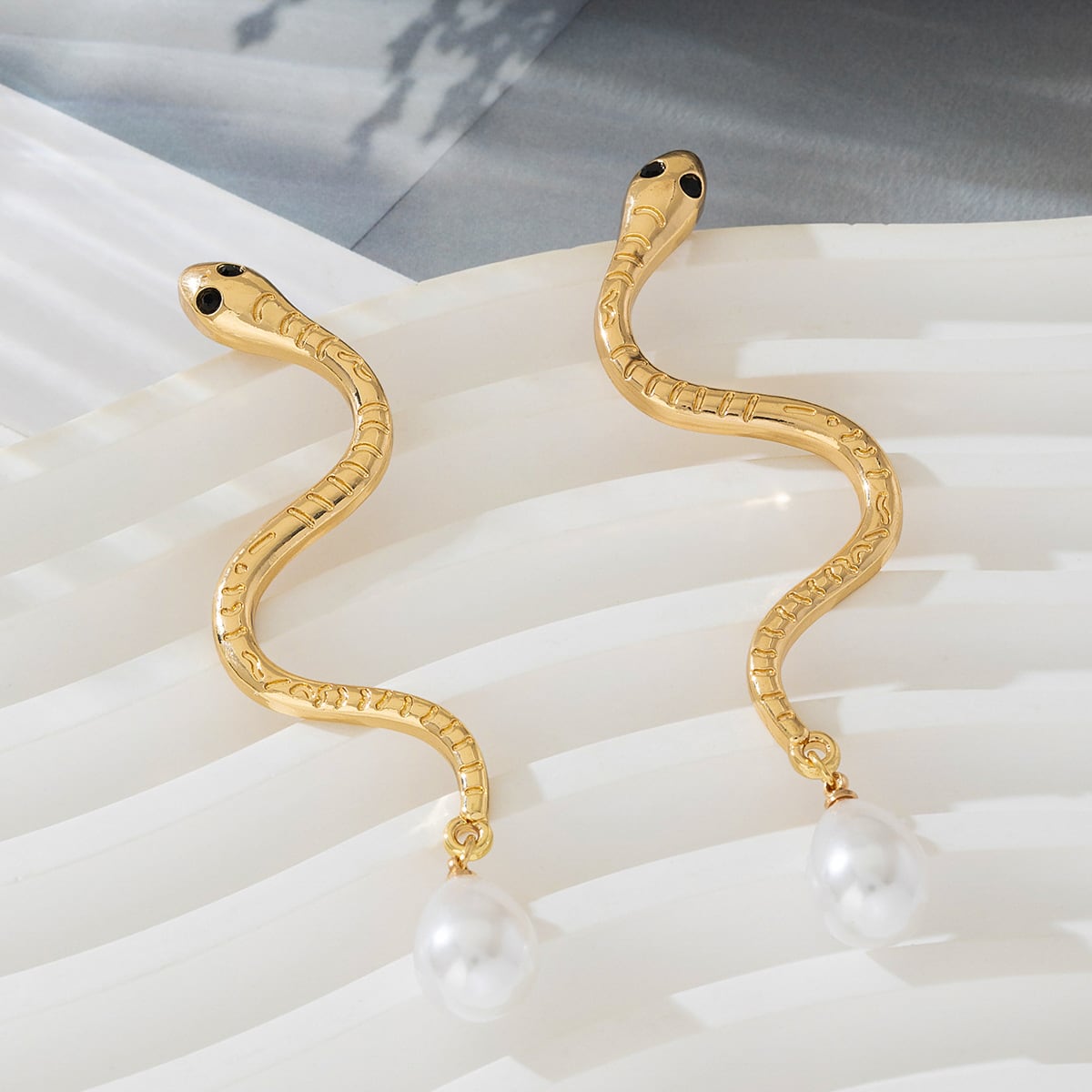 Snake Motif Asymmetrical Pearl Drop Earrings S00168