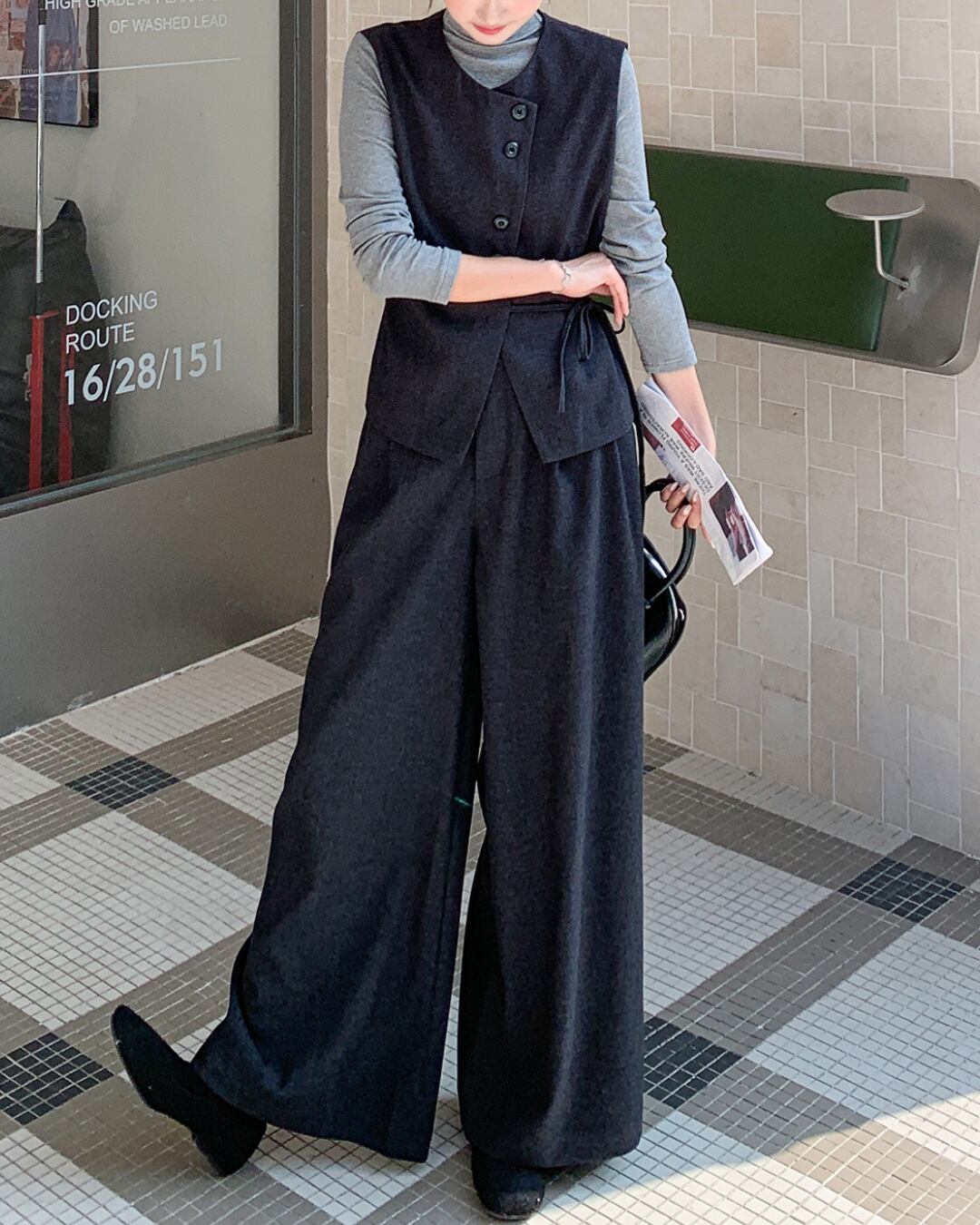 Stylish sleeveless vest & straight pants 3peace set S00069