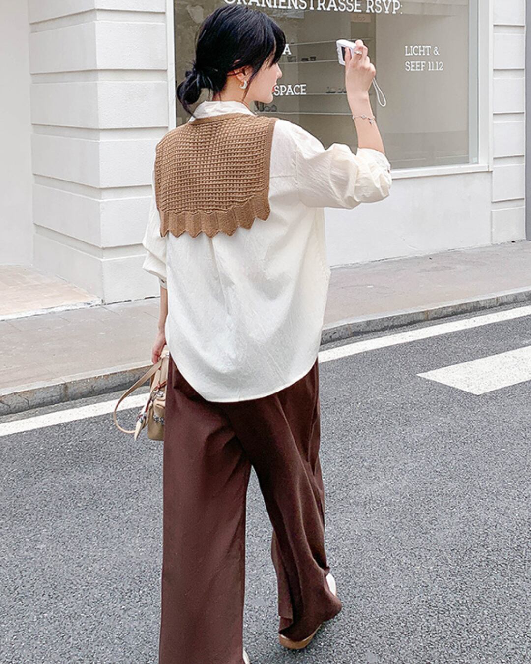 Pleated wide pants high waist long sleeve shirt coordination Set S00071