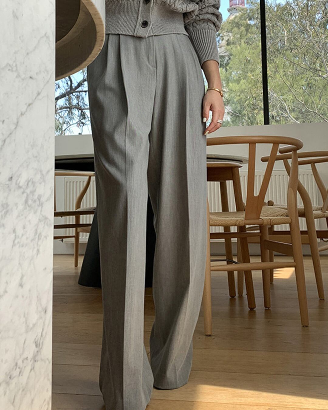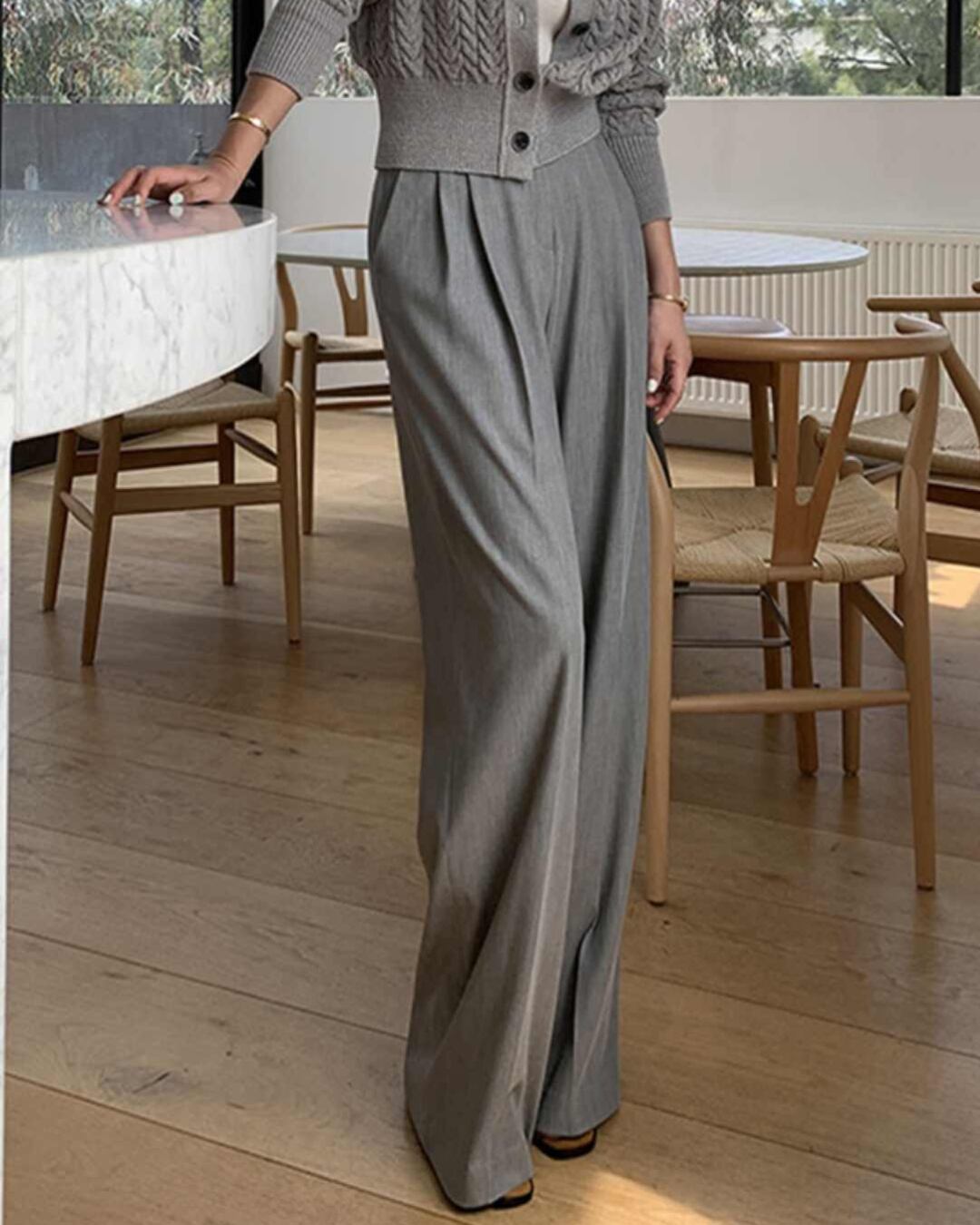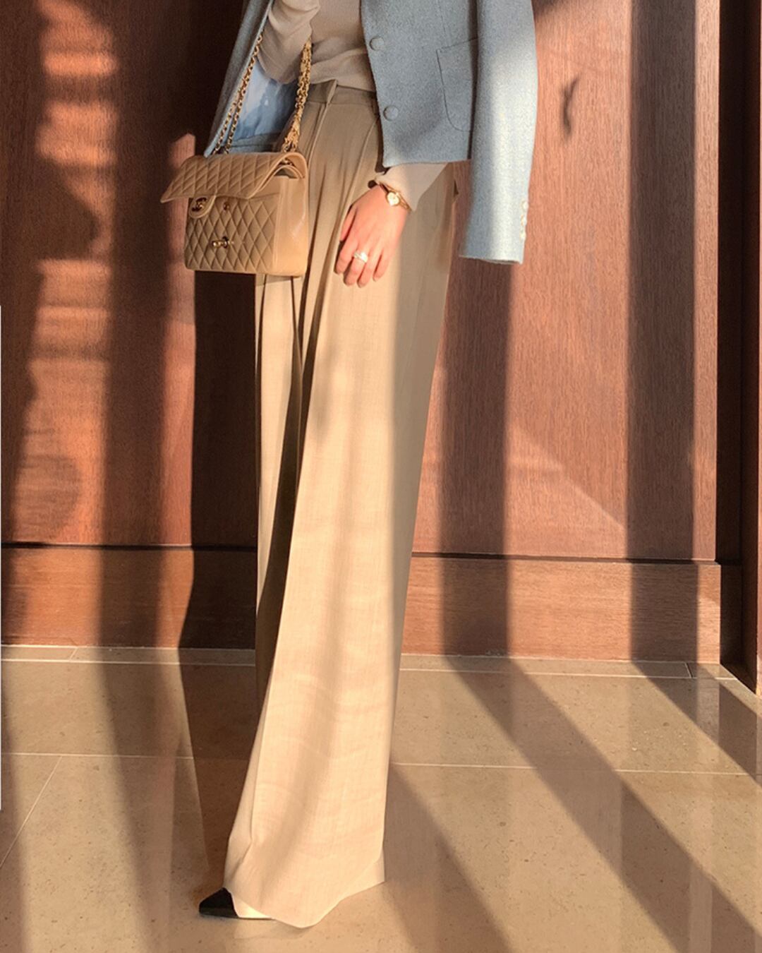 上品なデザインで、オフィスからカジュアルなシーンまで幅広く活躍します。高めのウエスト位置がスタイルアップを叶え、ワイドシルエットが脚を細く長く見せてくれます。