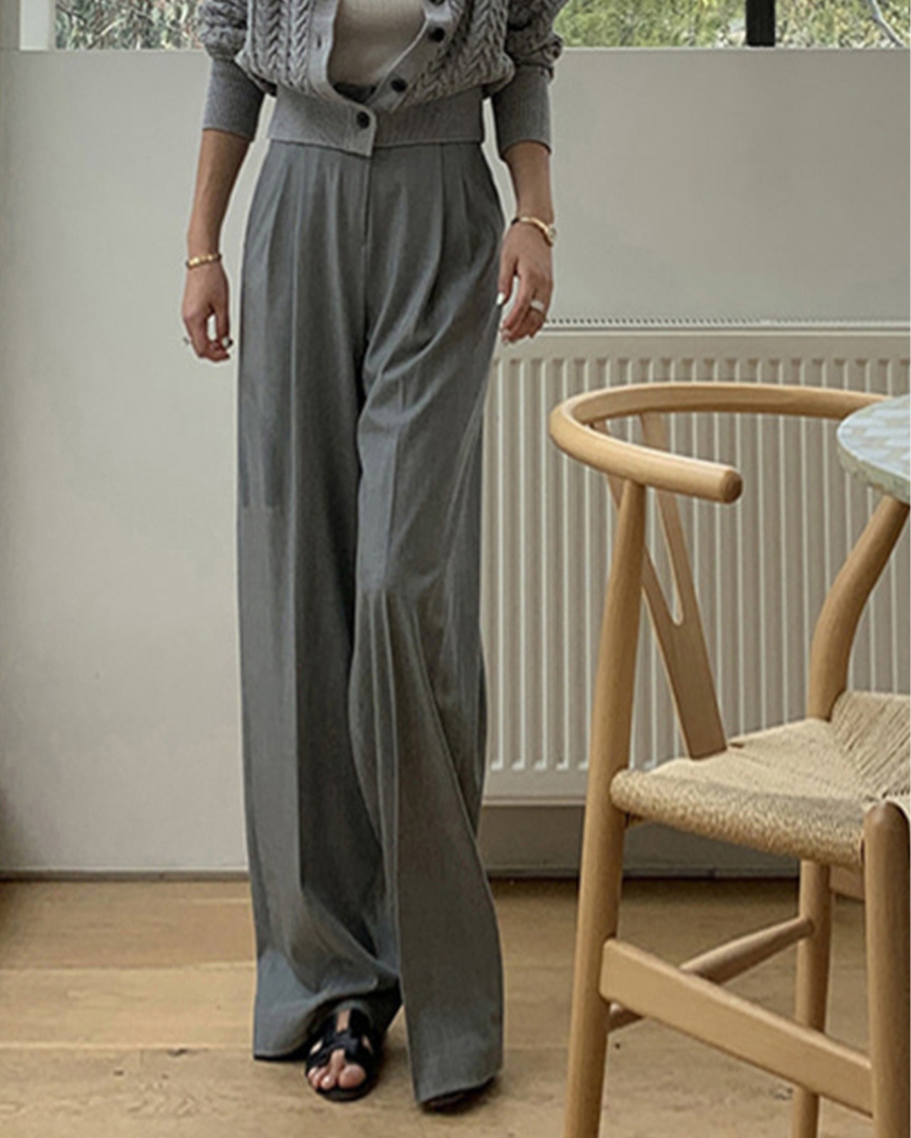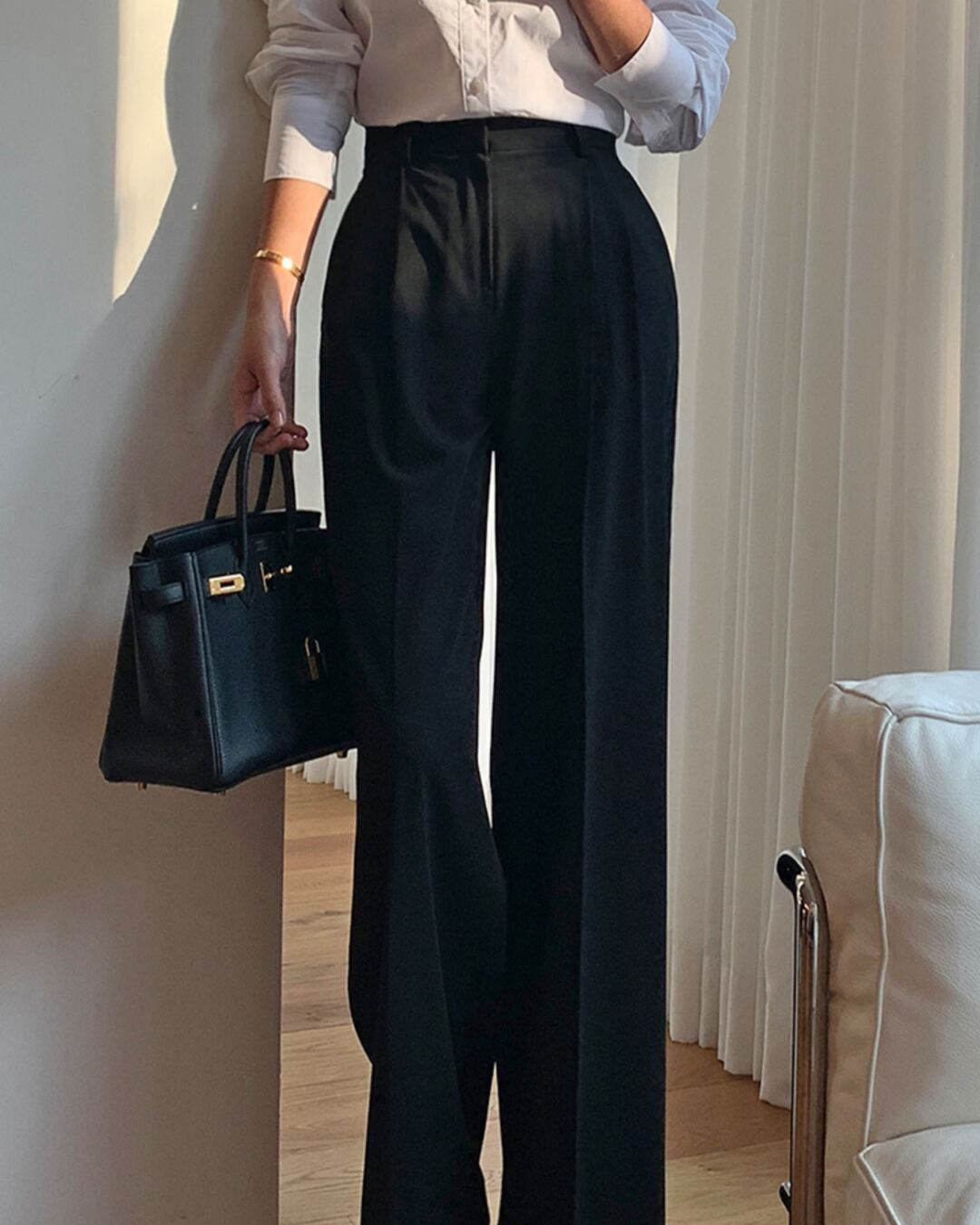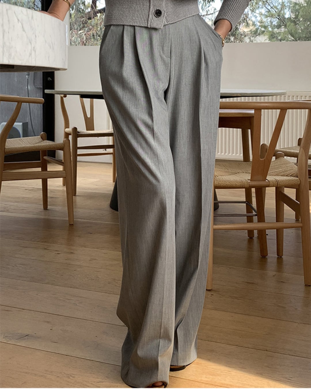 上品なデザインで、オフィスからカジュアルなシーンまで幅広く活躍します。高めのウエスト位置がスタイルアップを叶え、ワイドシルエットが脚を細く長く見せてくれます。