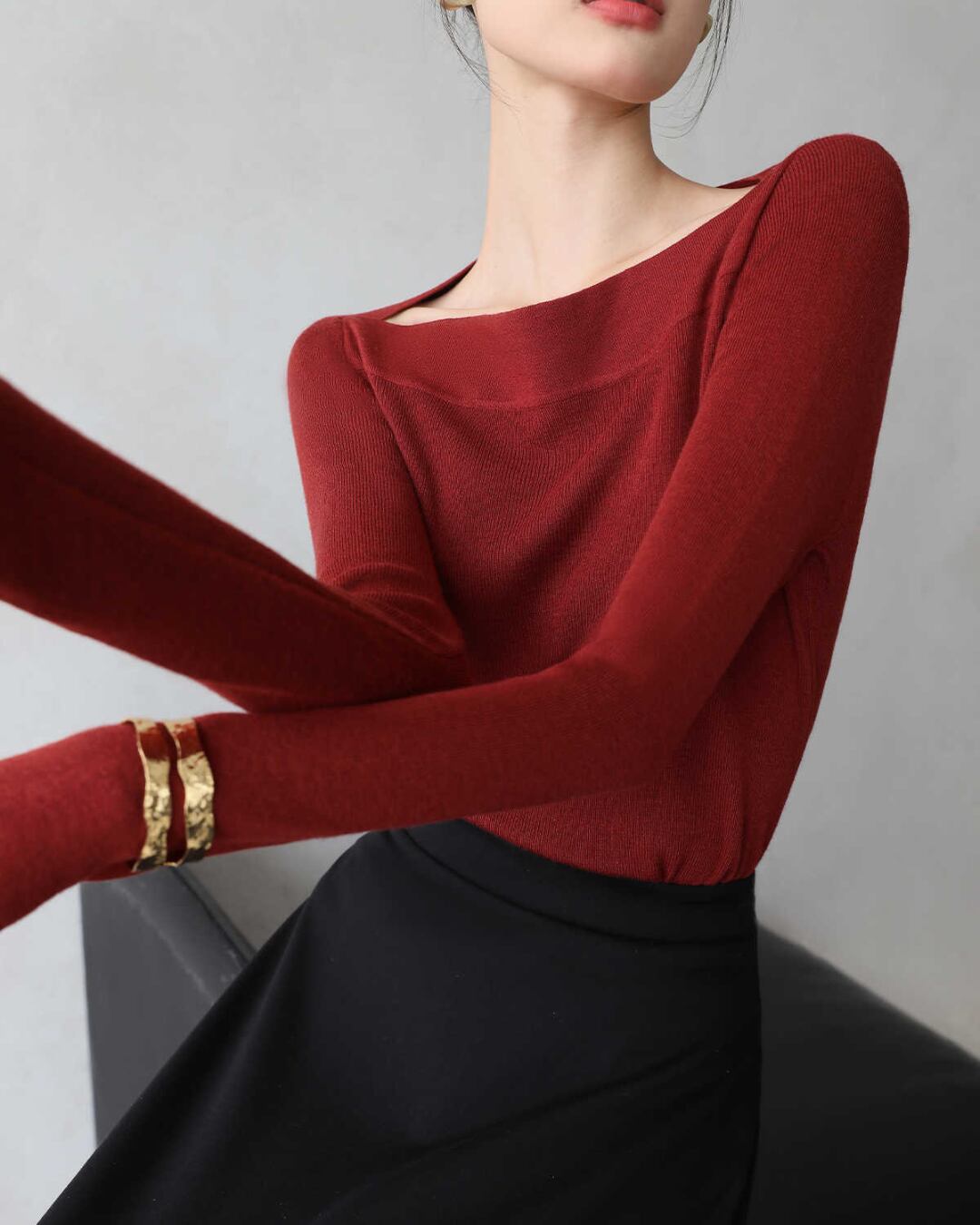 スクエアネックがデコルテを美しく見せてくれる長袖カットソー。