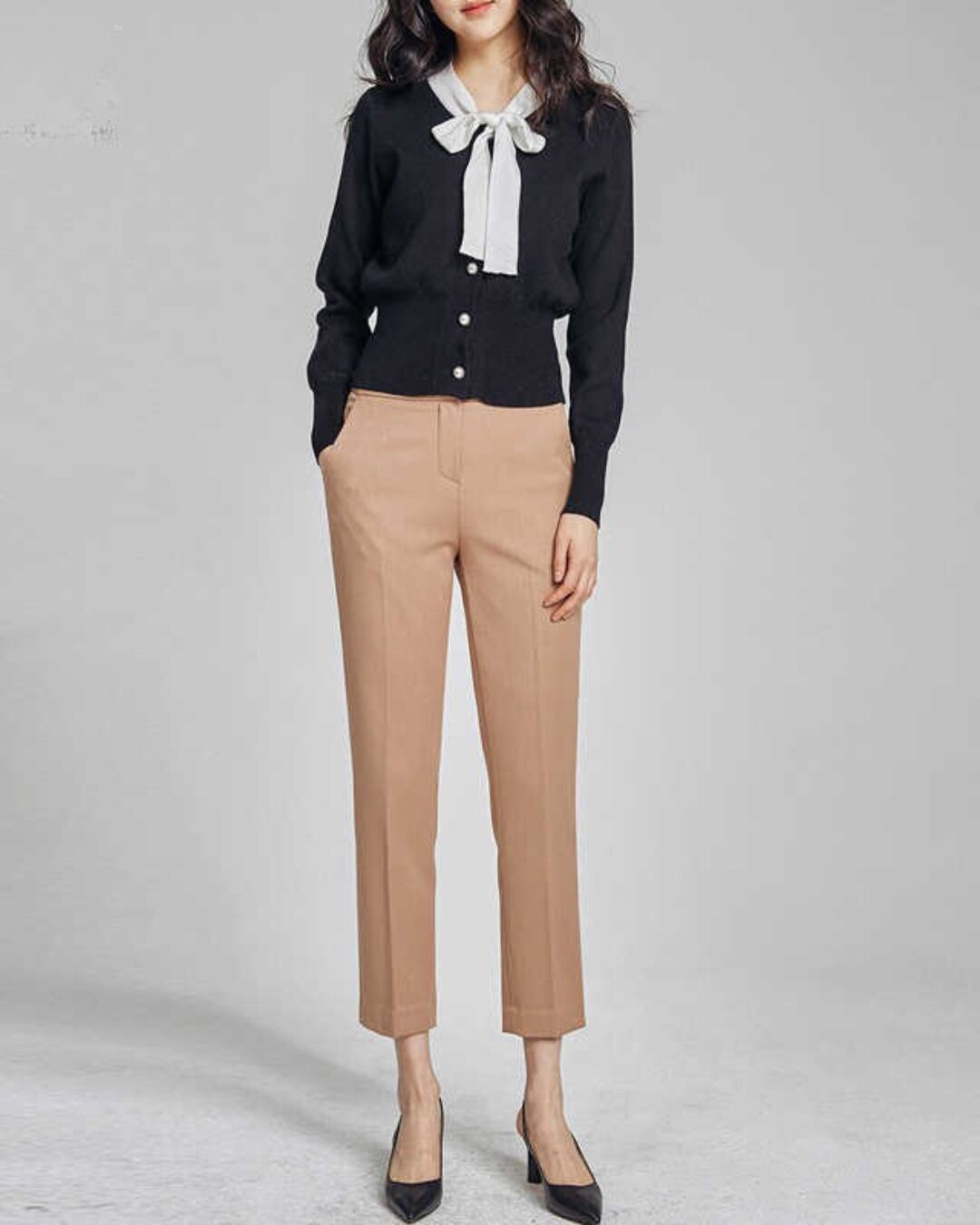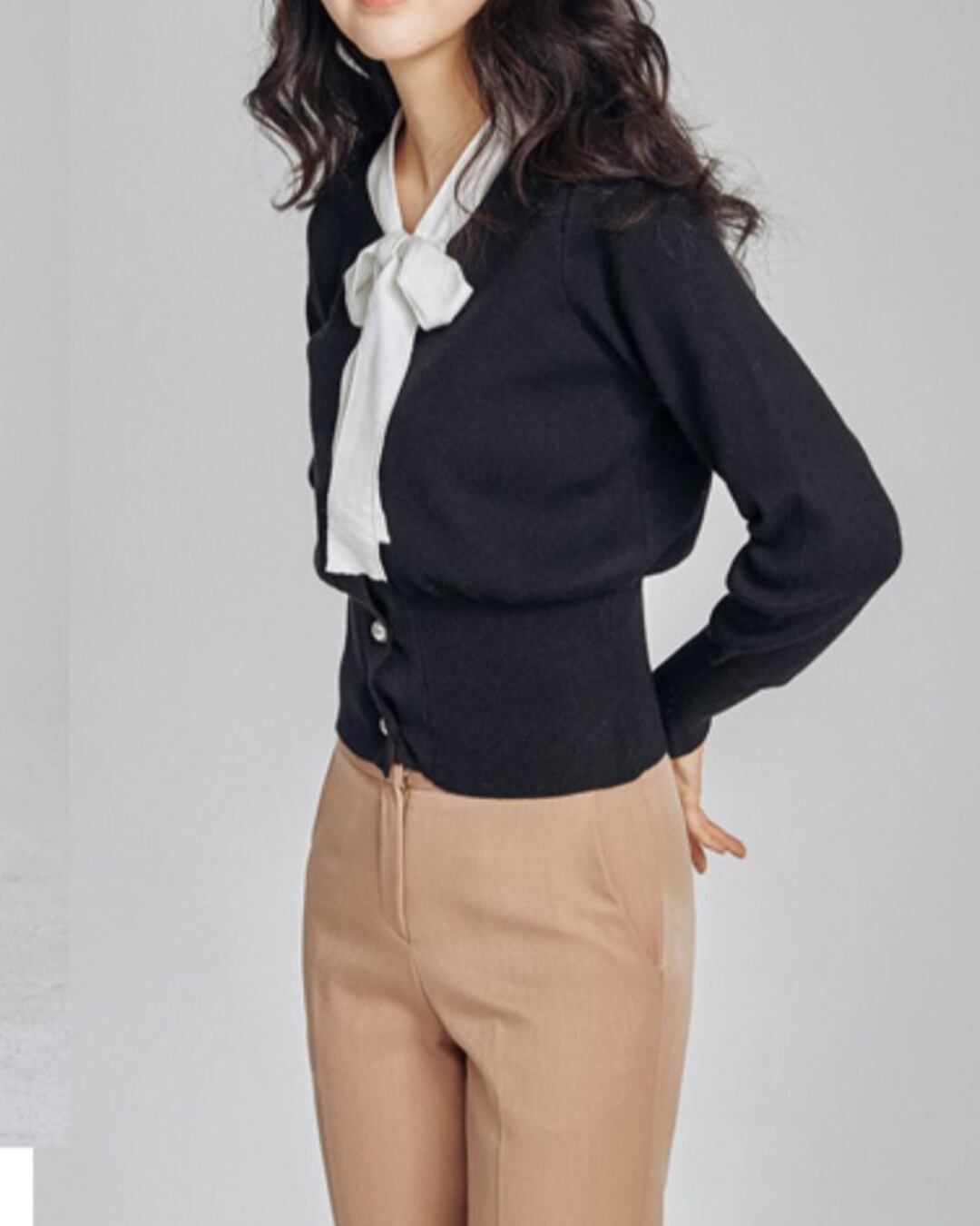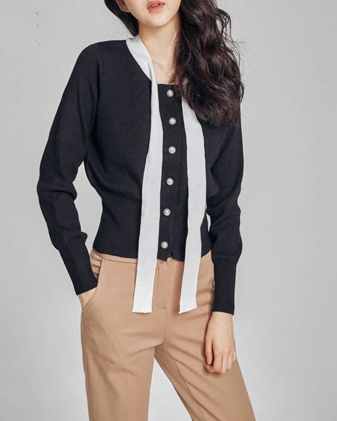 Long Sleeve Button Front Ribbon Tie Knit Cardigan S00192
