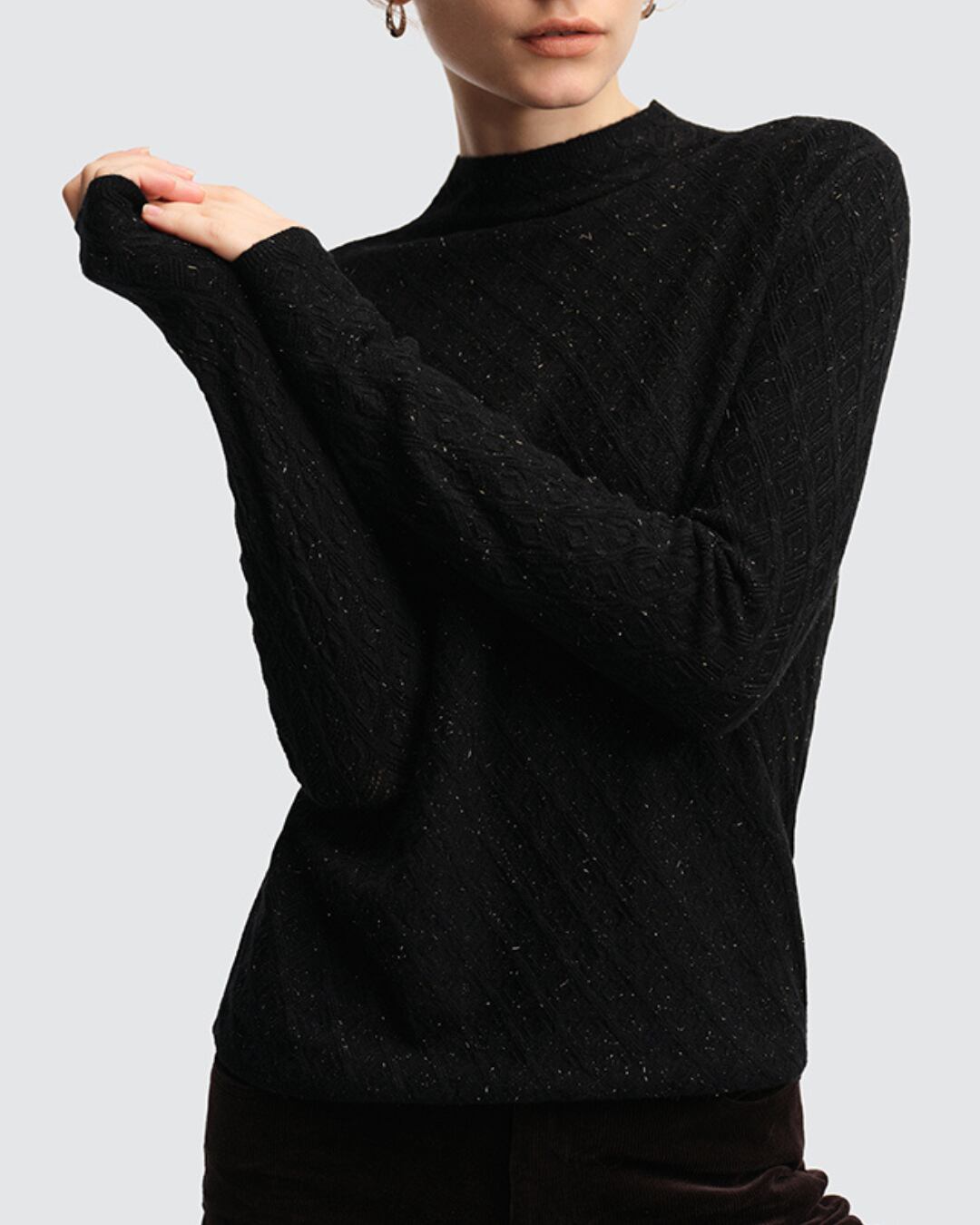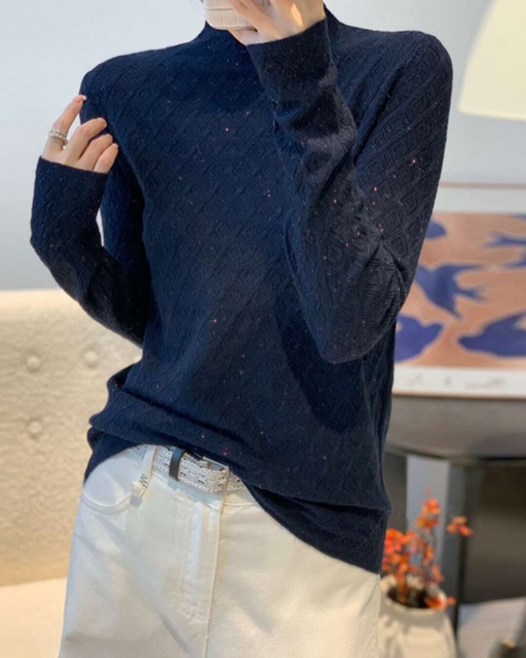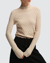 上品なハイネックデザインがポイントのニットプルオーバー。