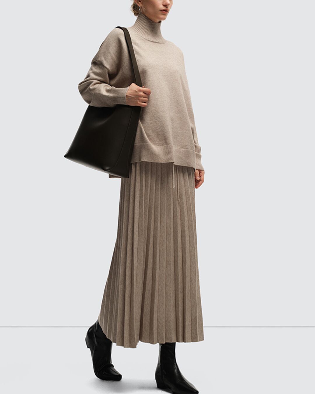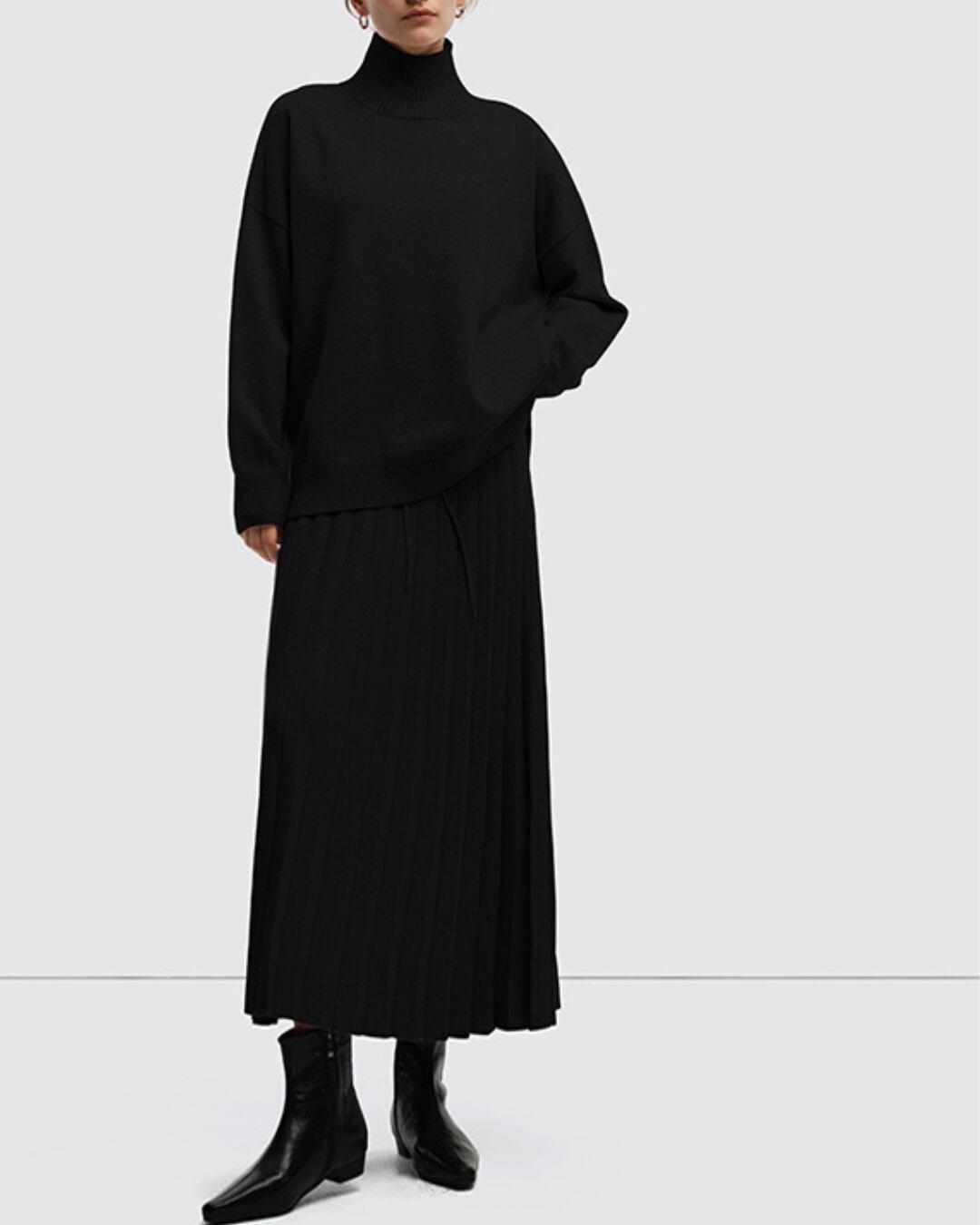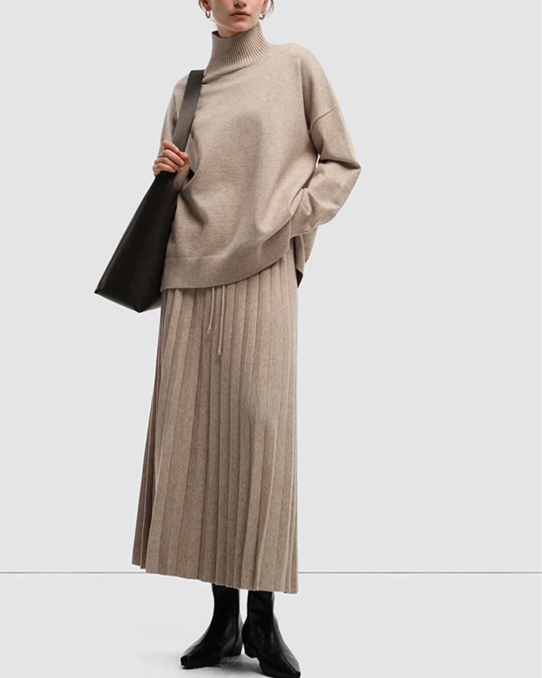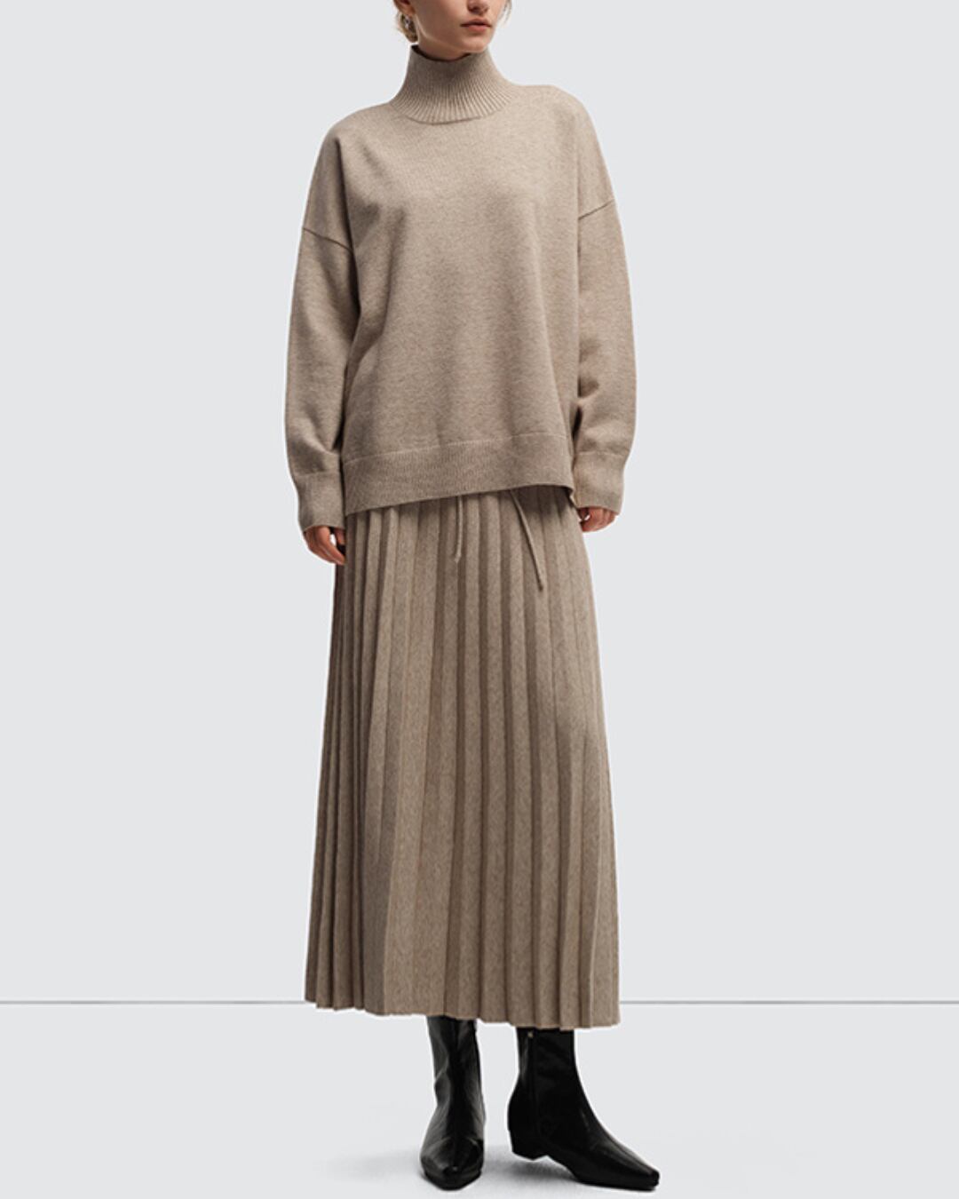 Long Sleeve Midi Length Knit Pleated Skirt Set-up S00200