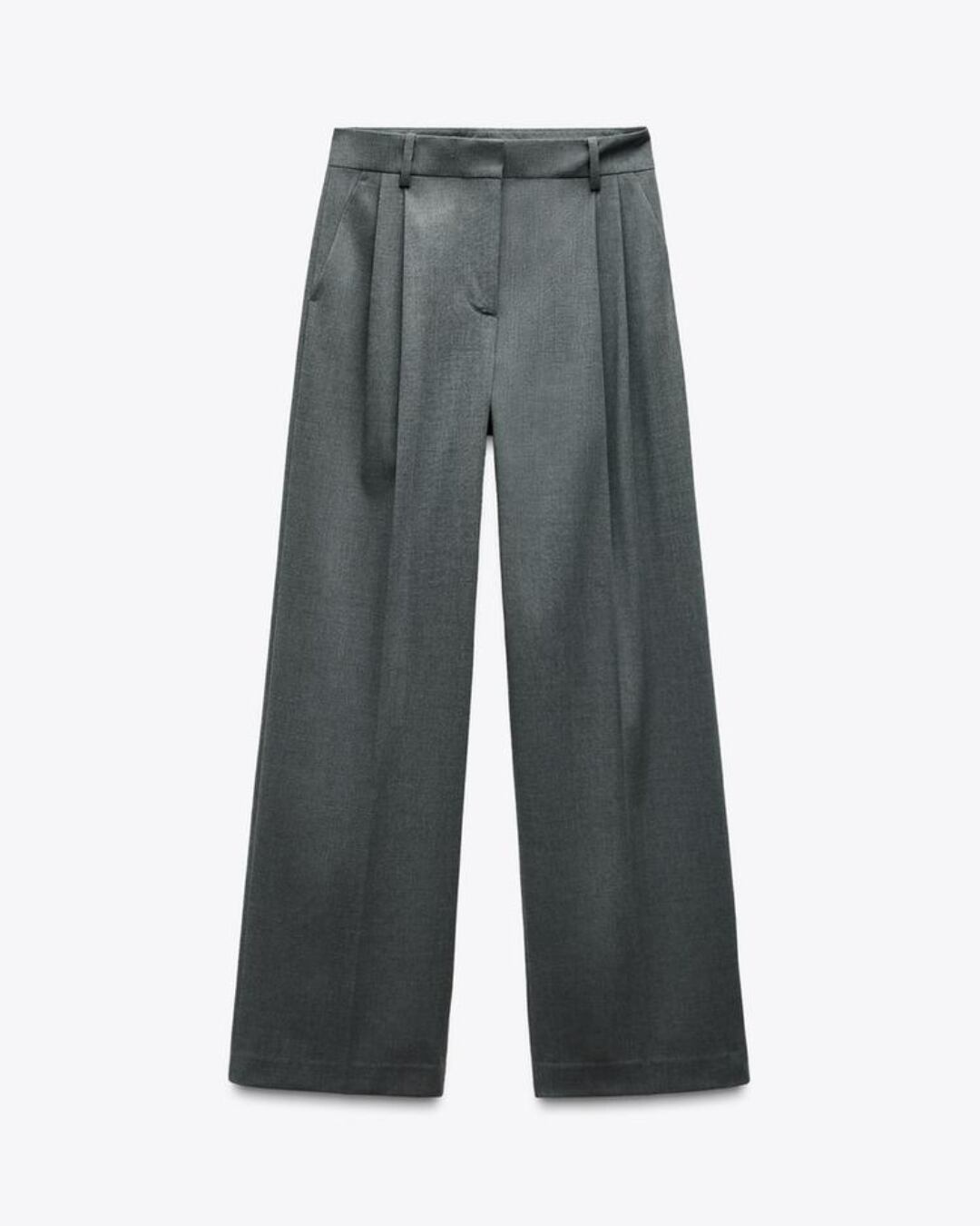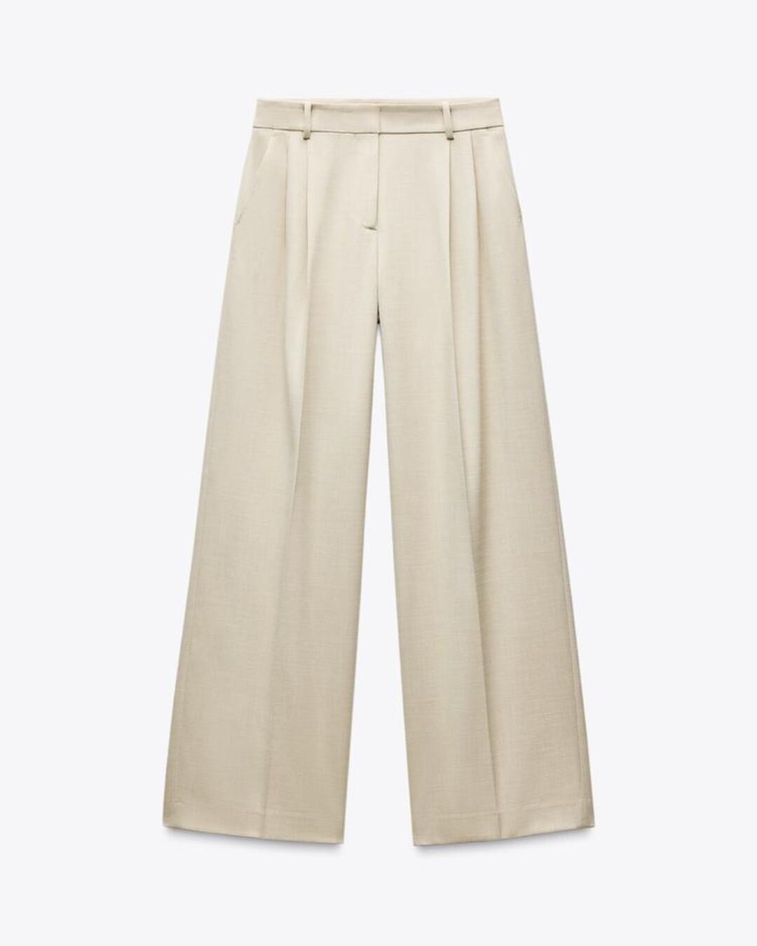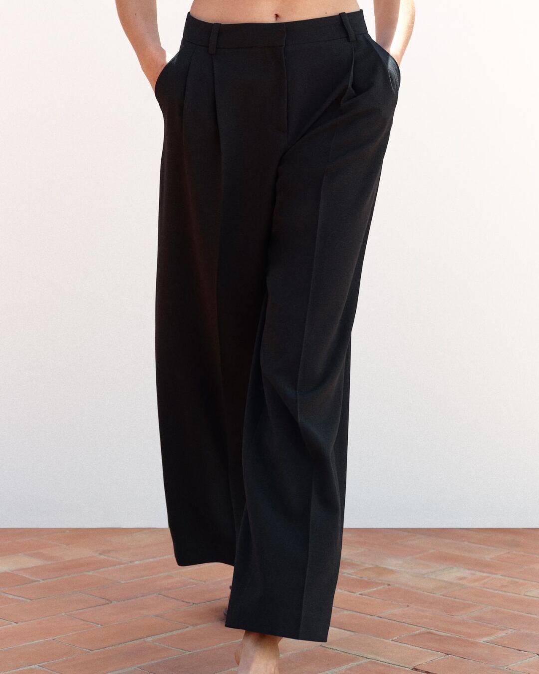 洗練されたセンタープレスが美しい、ハイウエストワイドレッグパンツ。