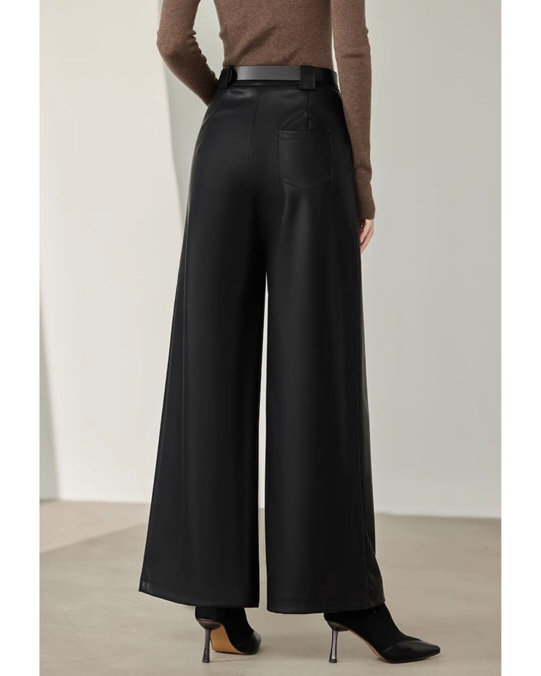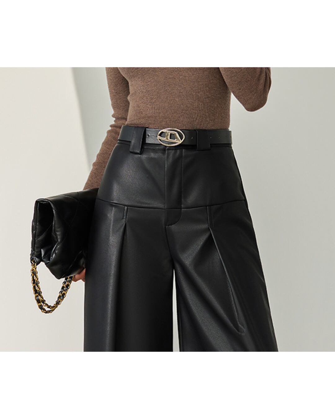 フェイクレザー素材が、洗練された大人の女性らしさを演出します。