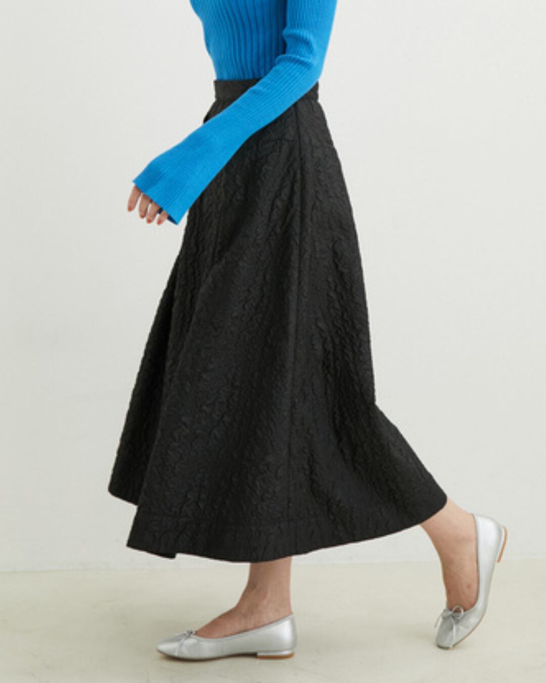 ジャカード織りのAラインミディ丈プリーツスカート。