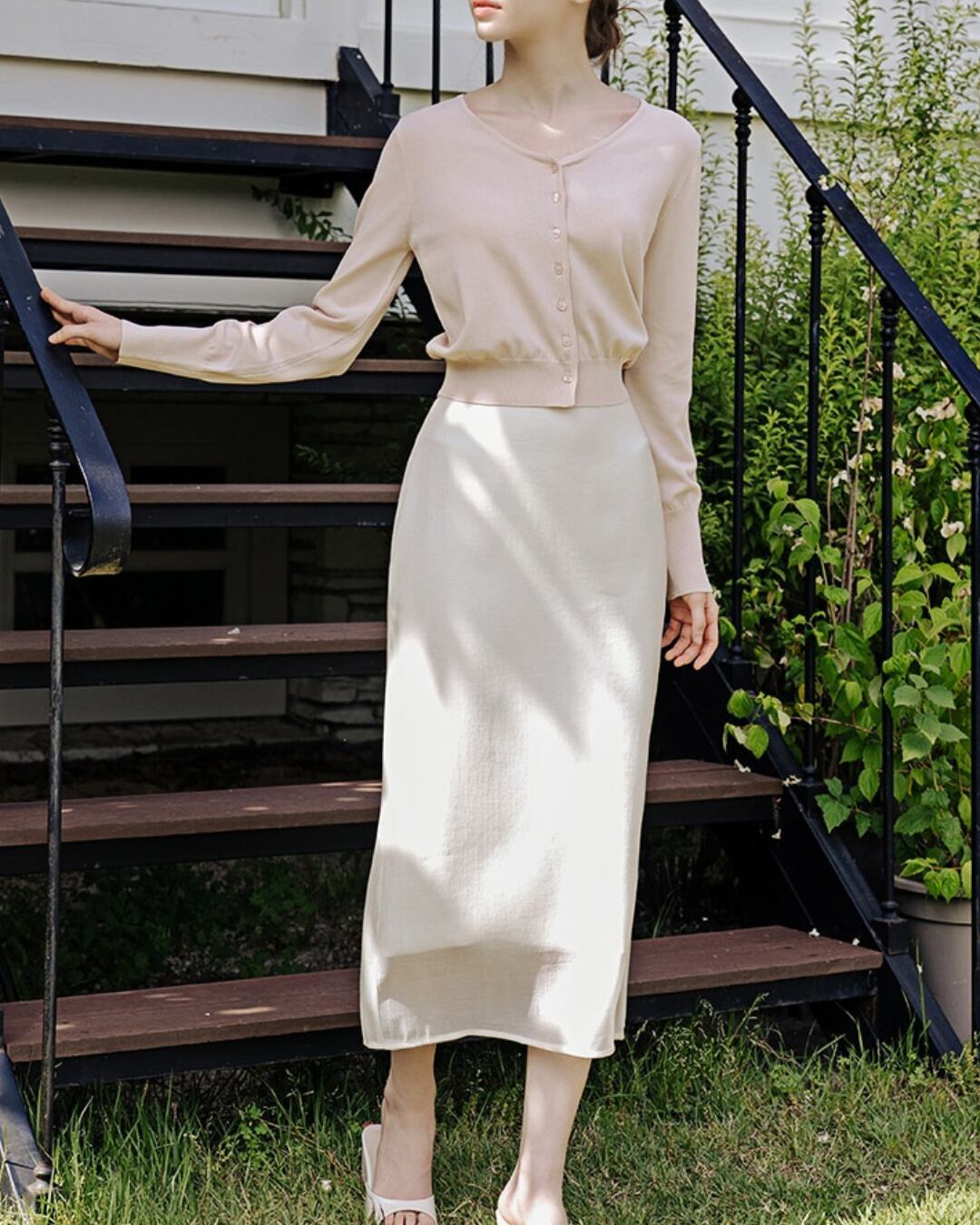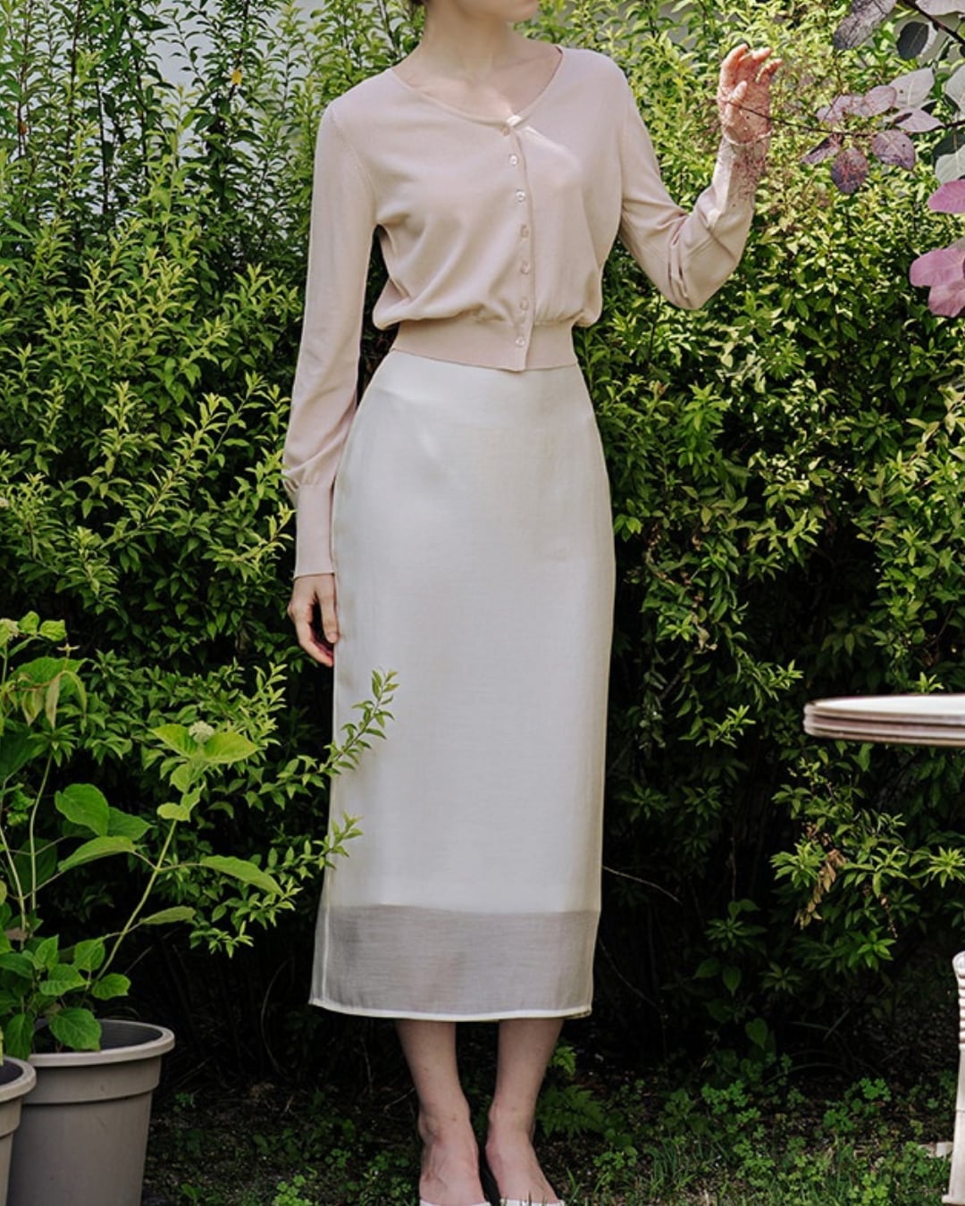 V-neck Rib Knit Long Sleeve Cardigan S00118