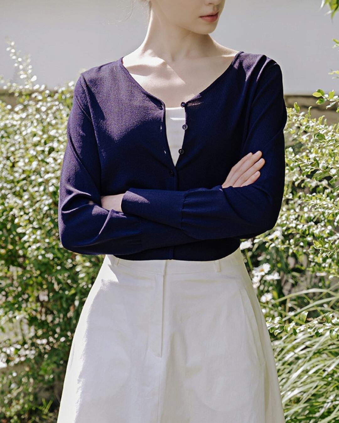 ボタンを閉めてトップスとして、または羽織として、季節を問わず活躍します。