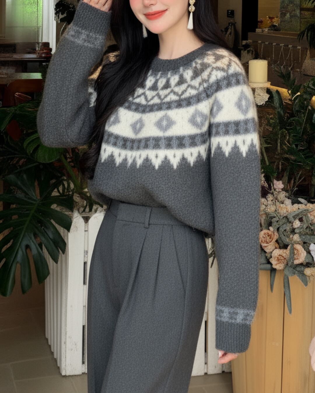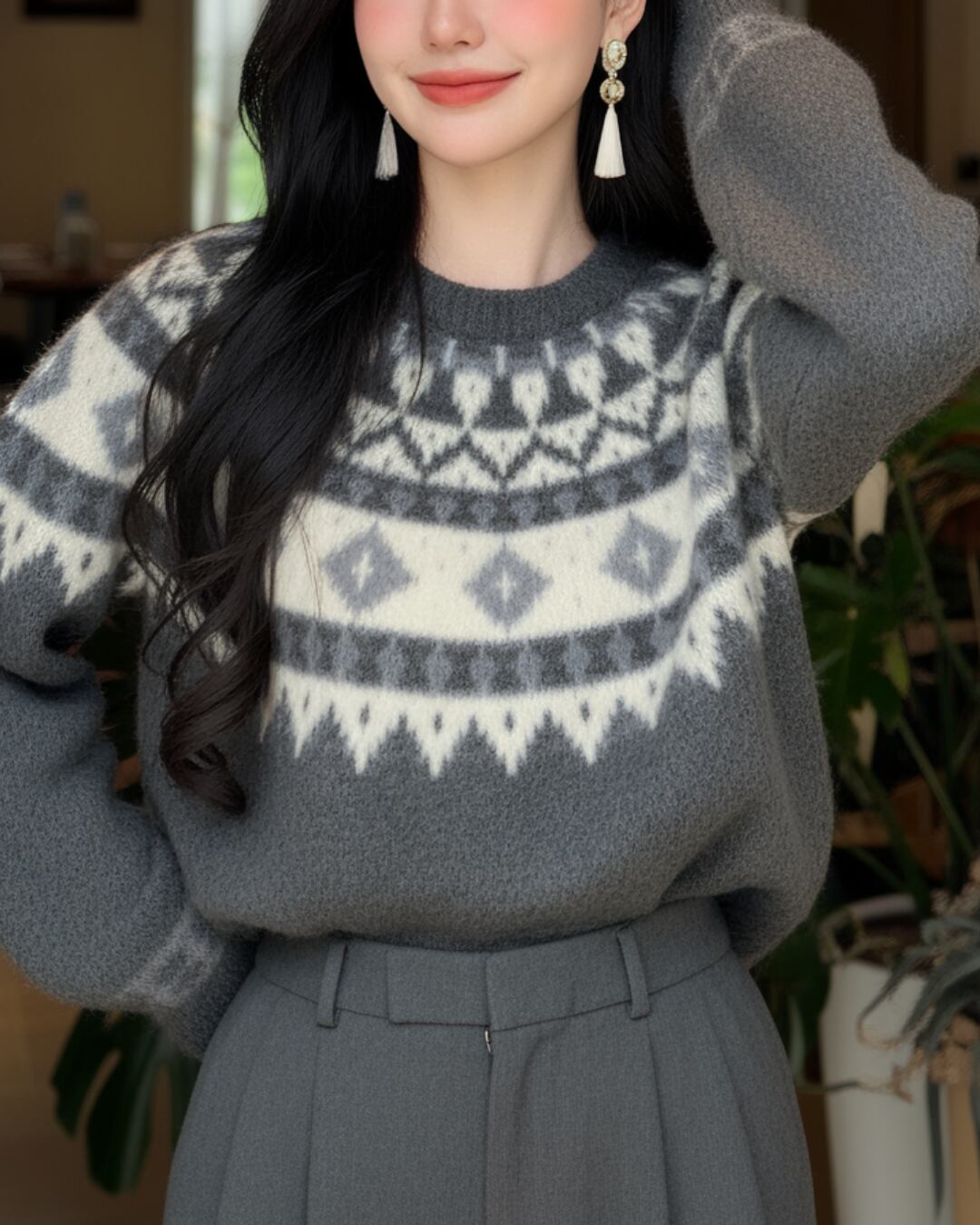 Nordic Pattern Long Sleeve Oversized Knit S00206
