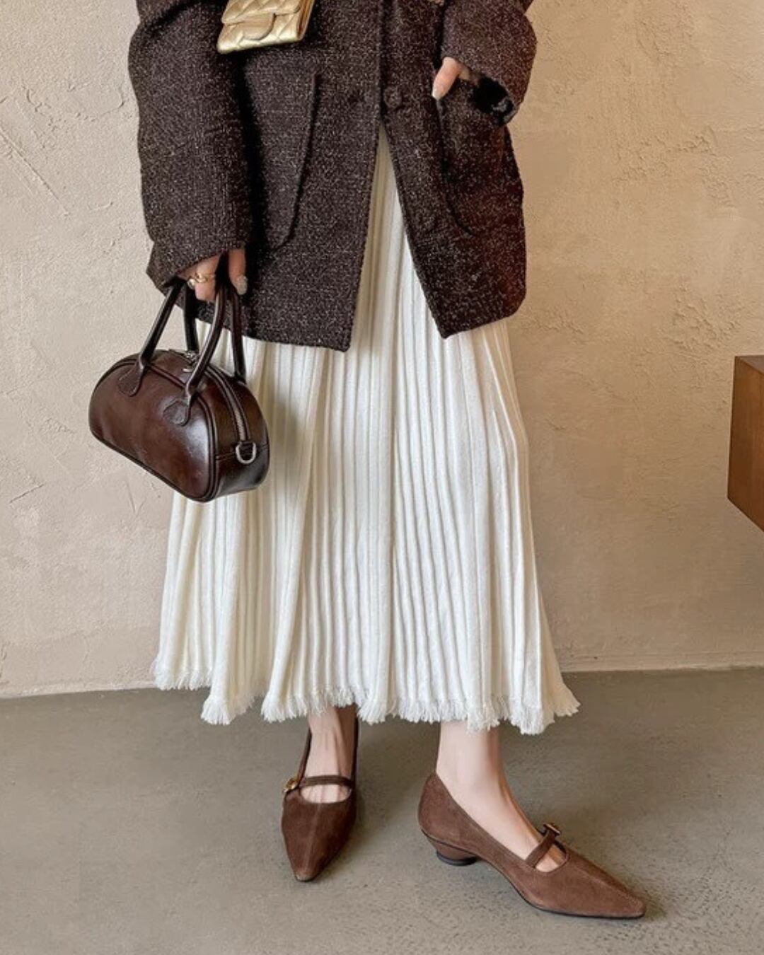 パンツスタイルにもスカートにも相性が良く、シーンを選ばず活躍する一足です。