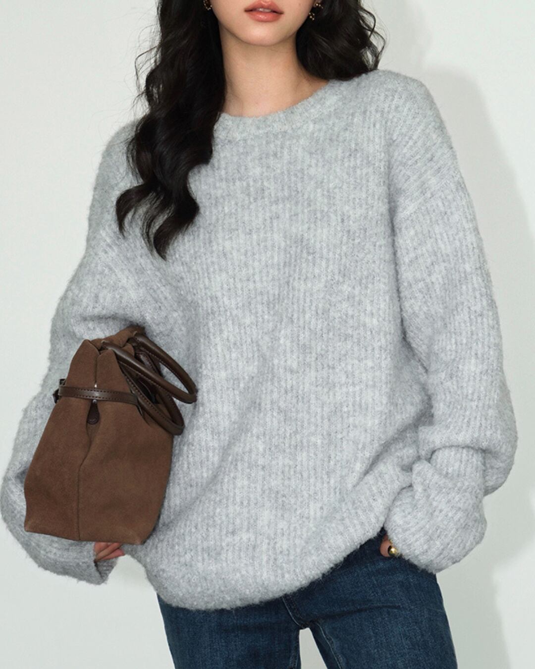 リラックス感漂う、ヒップ丈のオーバーサイズニット。