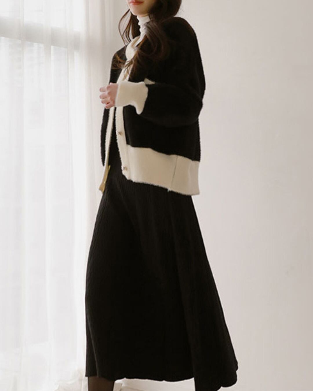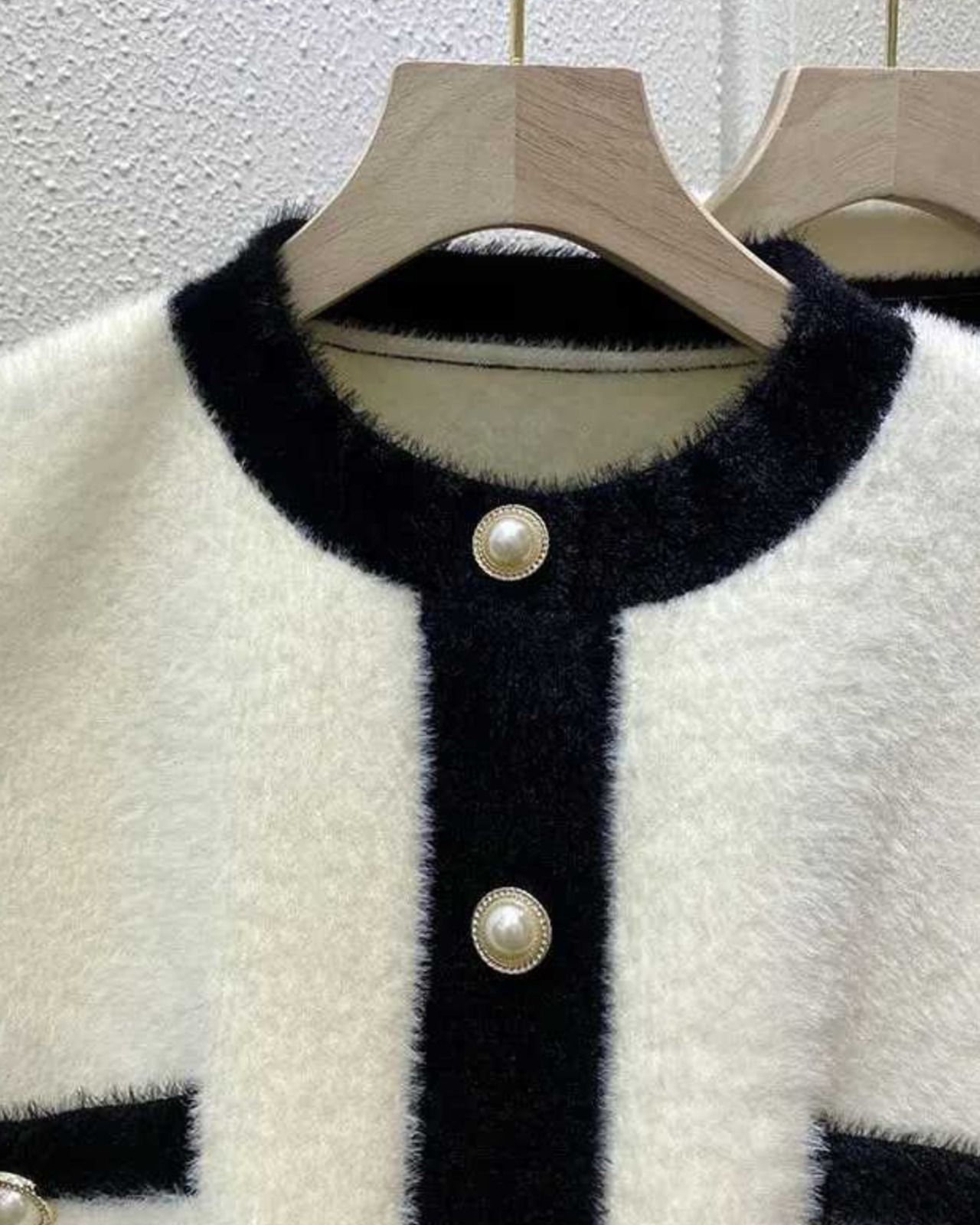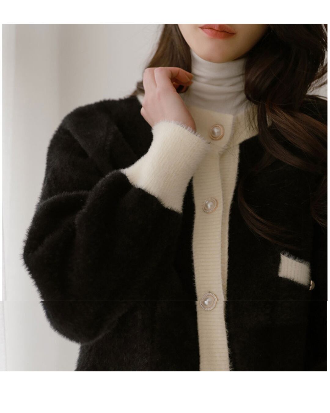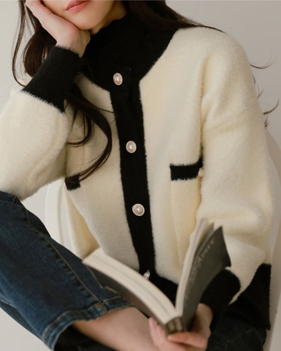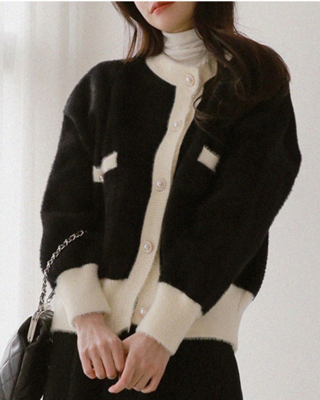 フロントボタンが上品な印象を与えるニットカーディガン。