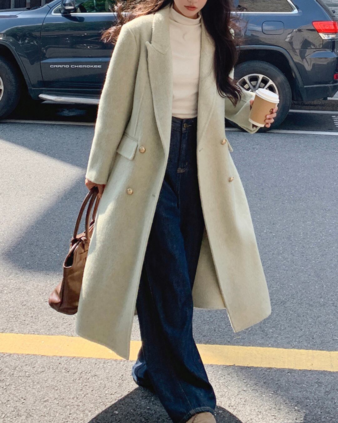Double-Breasted Long Length Notch Lapel Jacket S00152