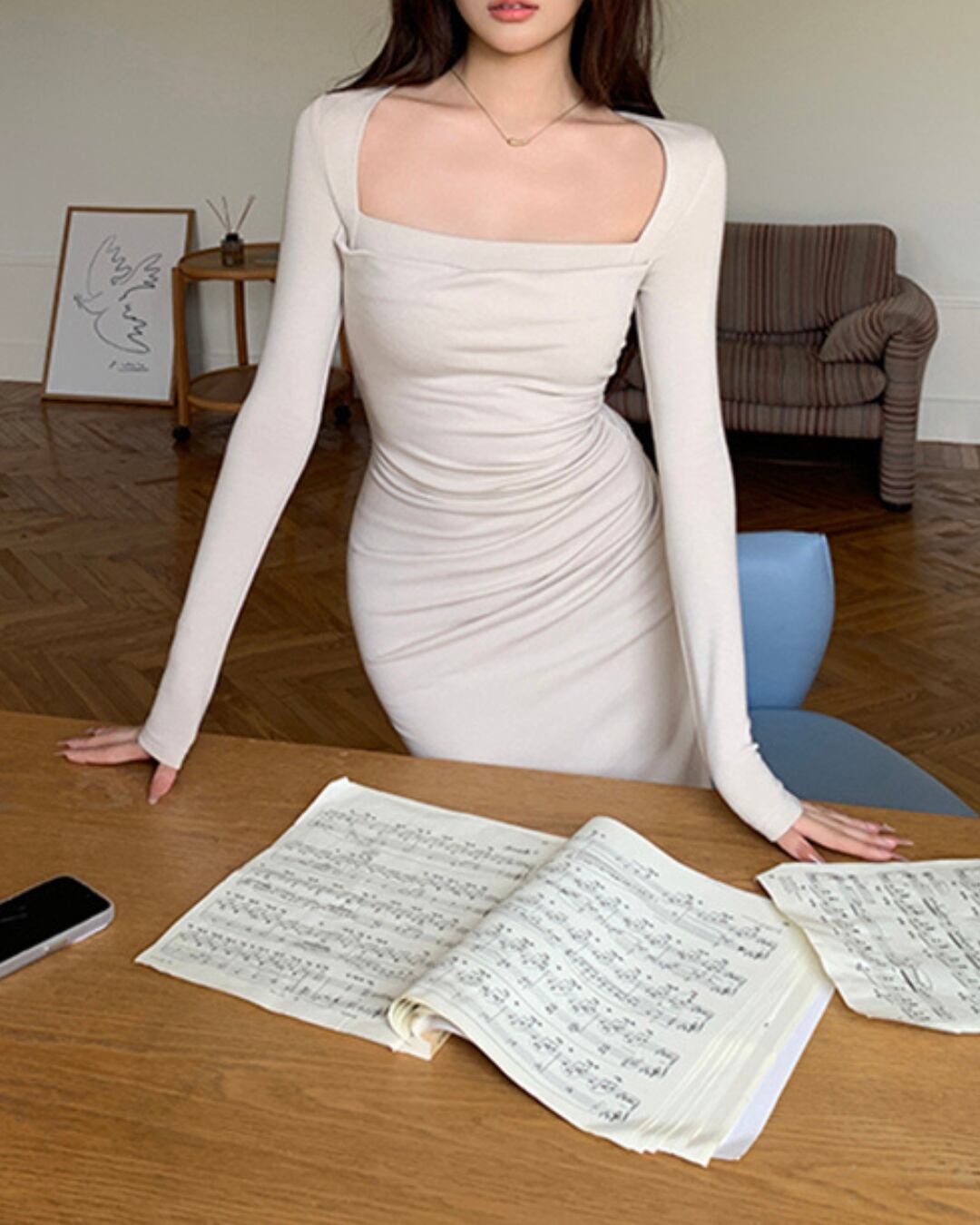 シンプルなデザインの中に、さりげない個性が光るロングスリーブドレス。