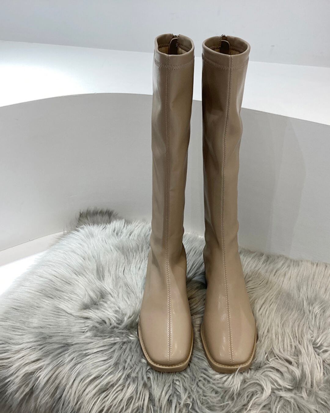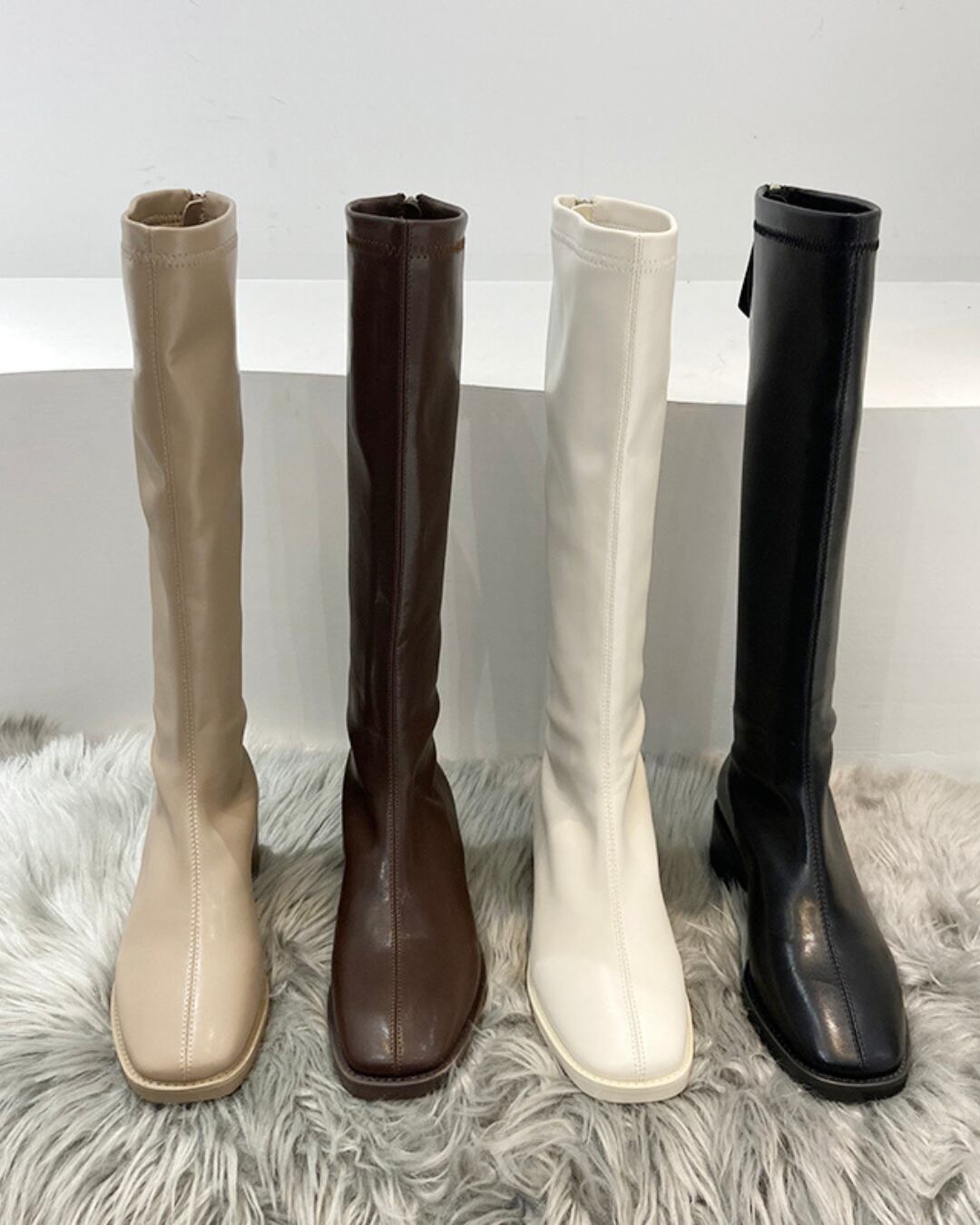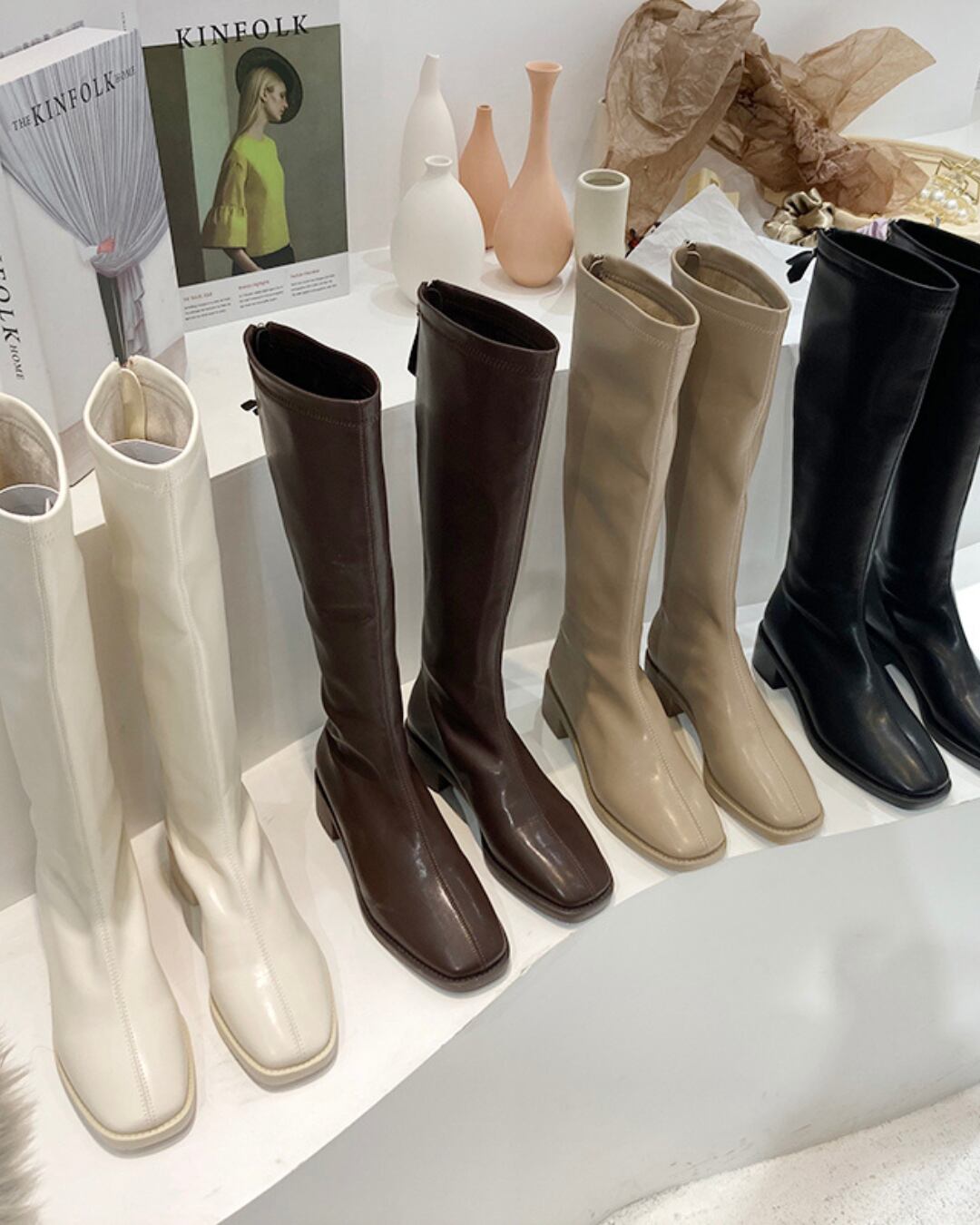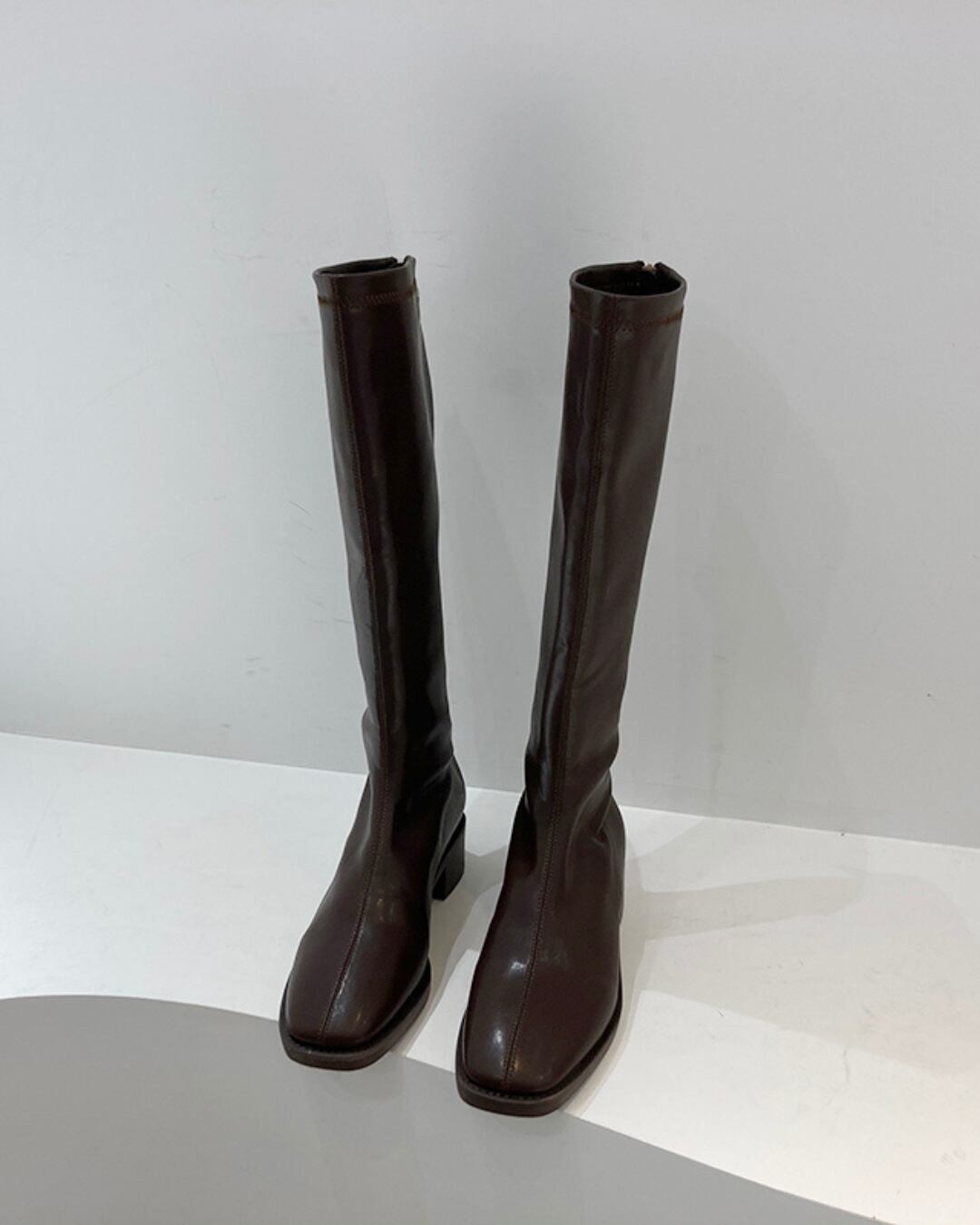 スクエアトゥとバックジップが洗練されたロングブーツ。