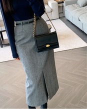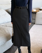 Wool Material High-Waisted Tight Skirt with Slit S00079