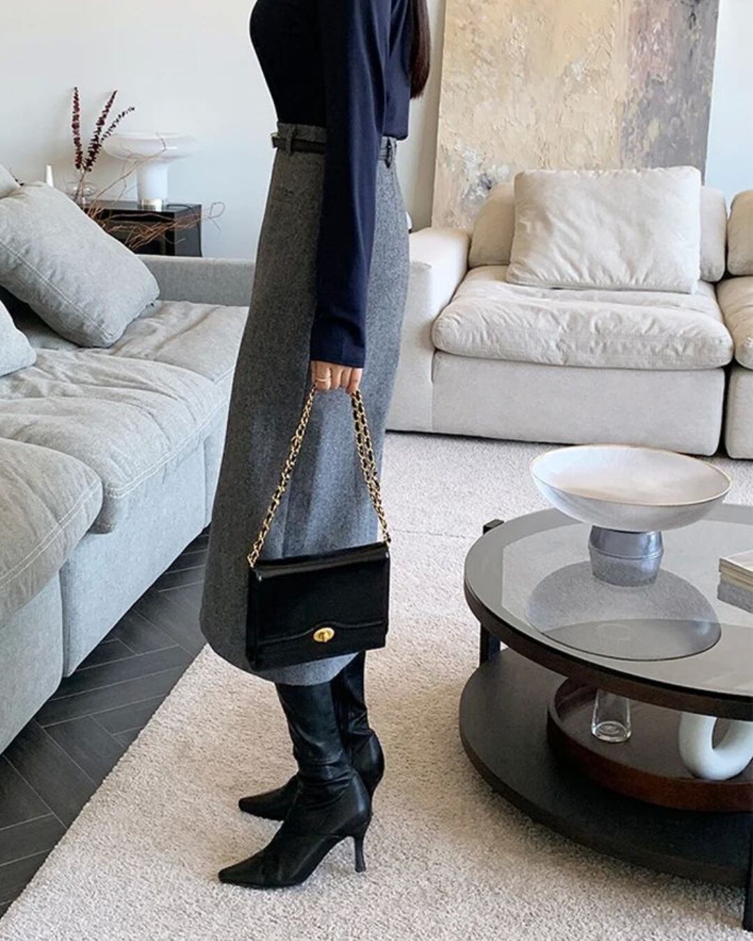 シンプルなトップスと合わせるだけで、たちまち洗練されたスタイルが完成します。