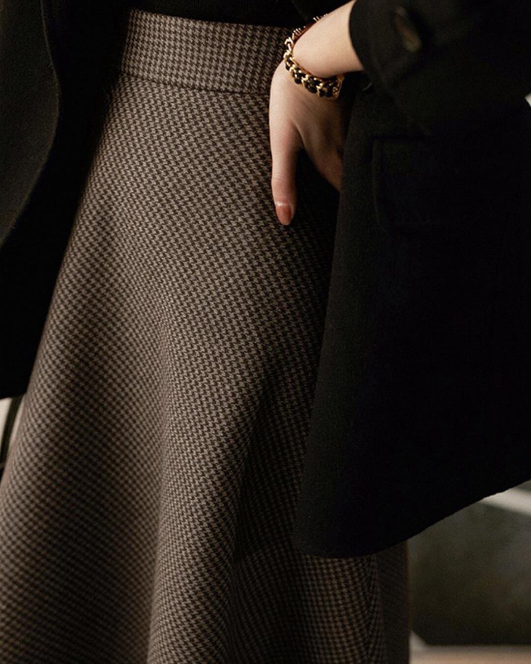 グレンチェック柄が上品なミディ丈Aラインスカート。