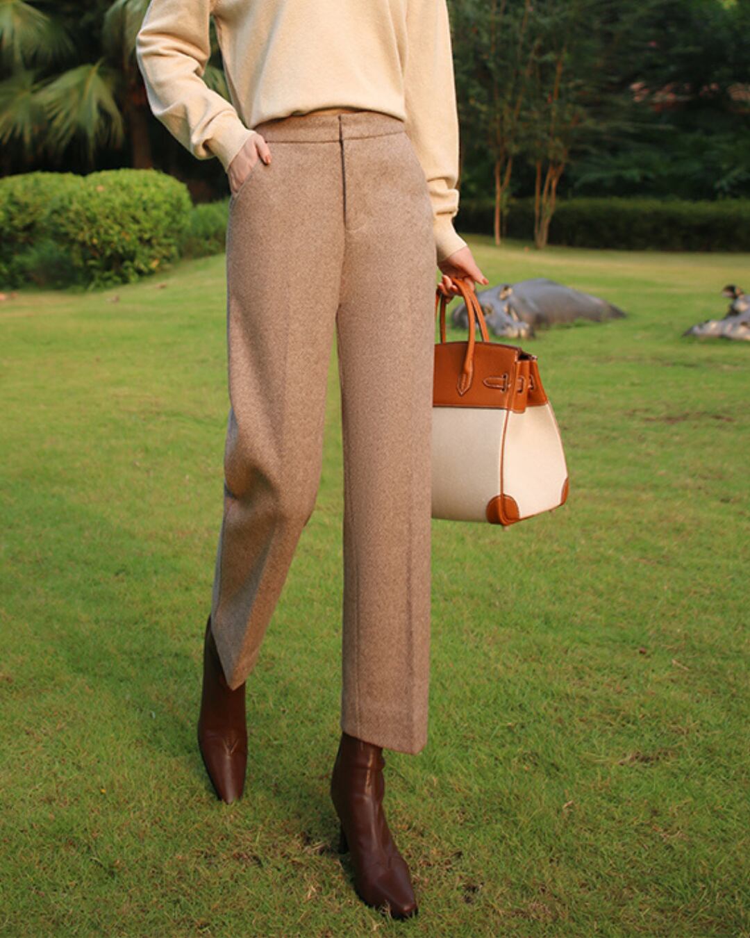 High-waisted wool straight pants full length S00092