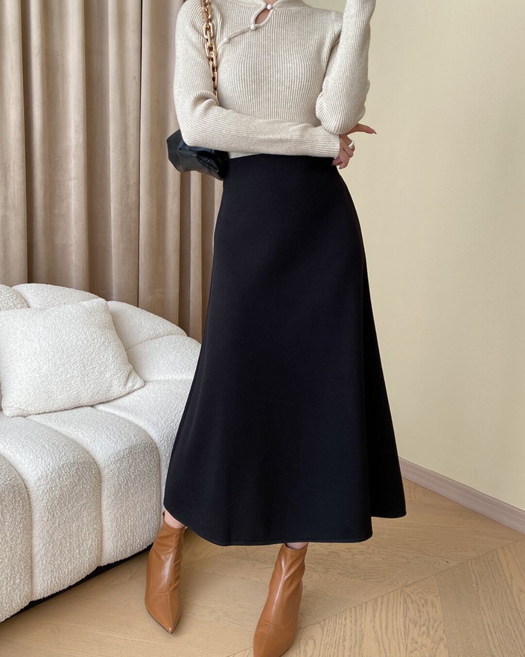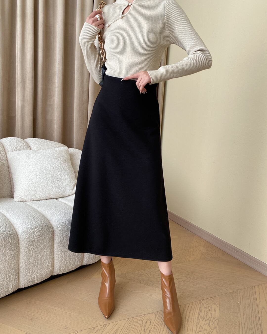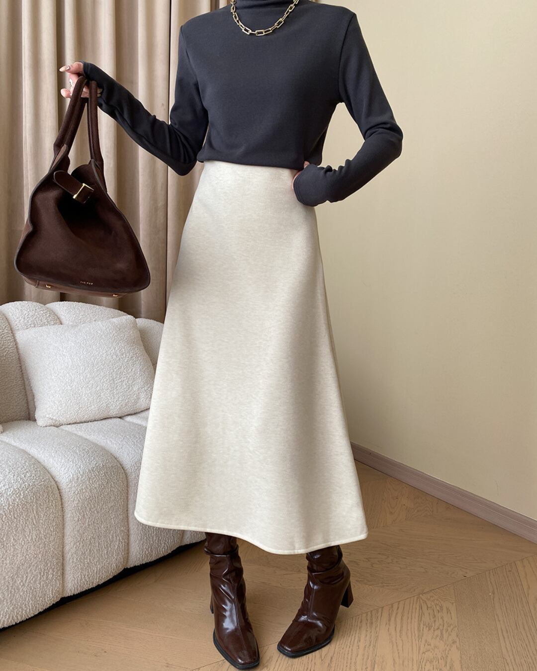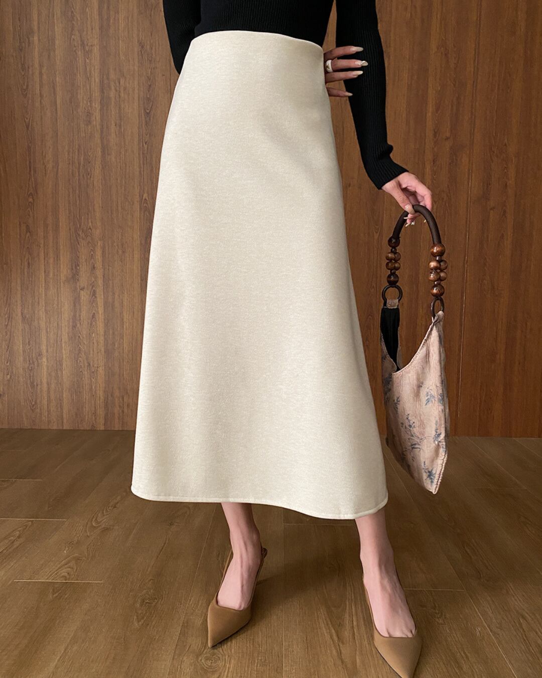 ハイウエストでスタイルアップ効果のあるミディスカート。