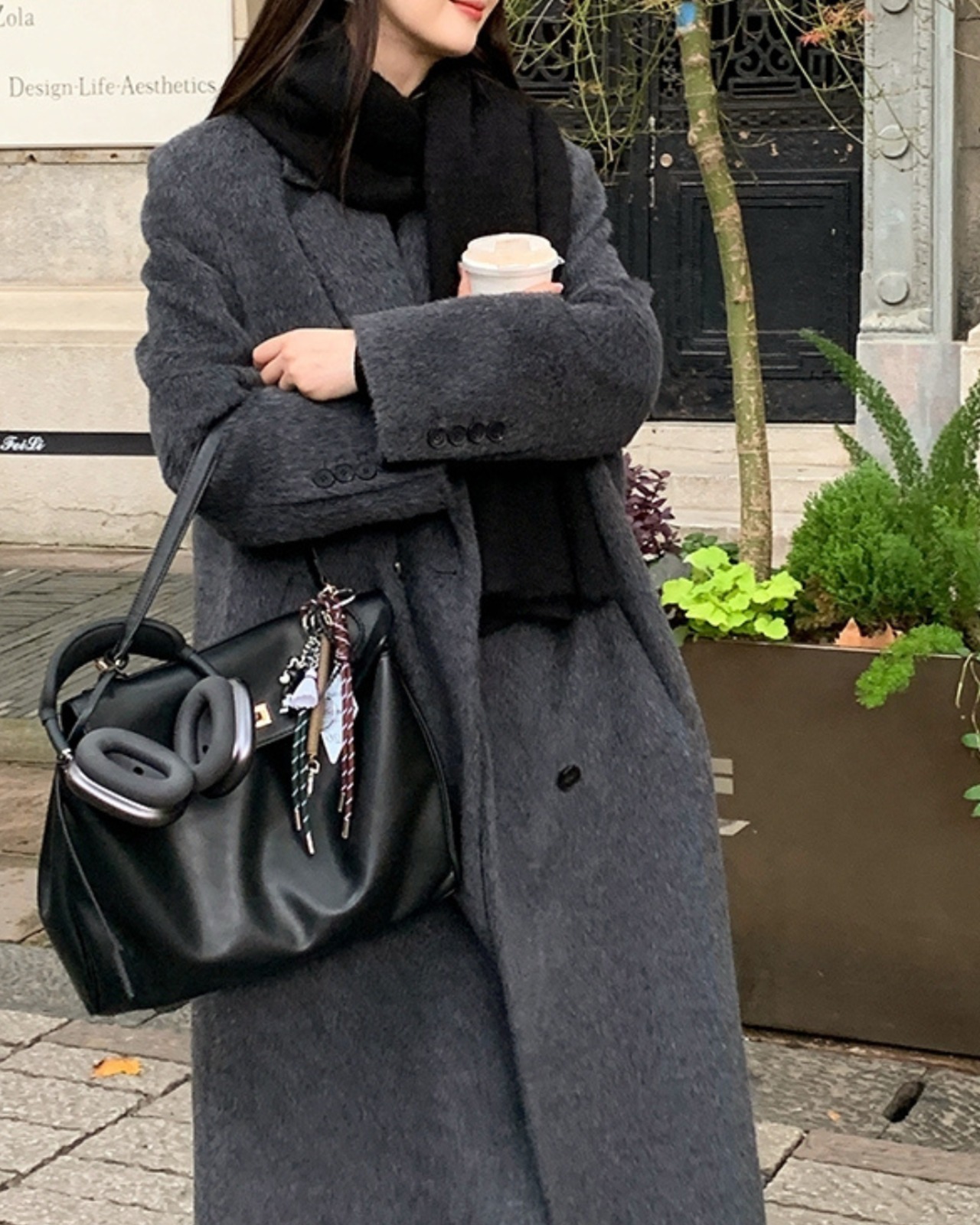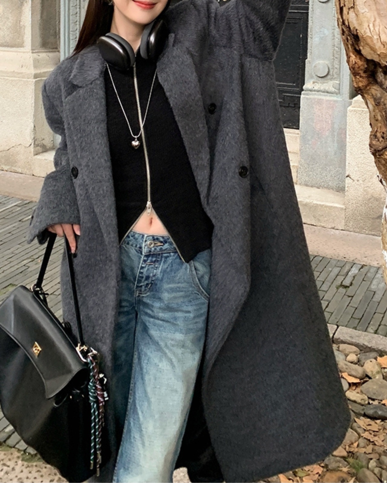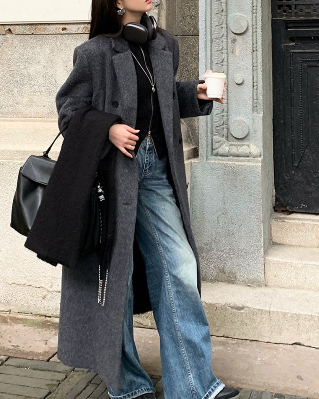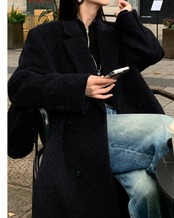 Long Length Wool Double-Breasted No Collar Coat S00089