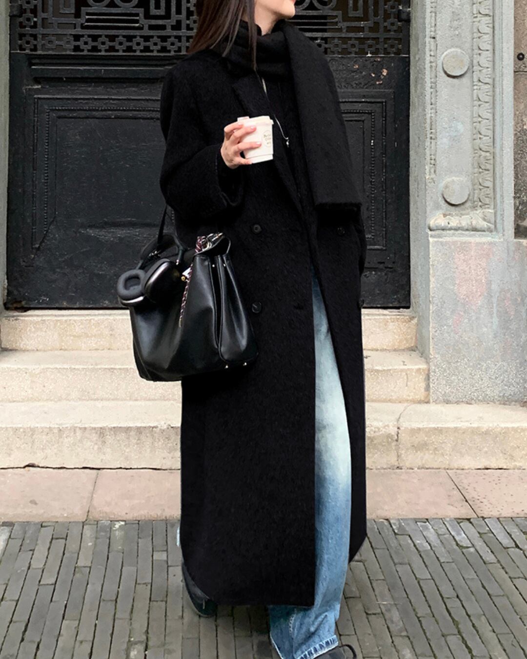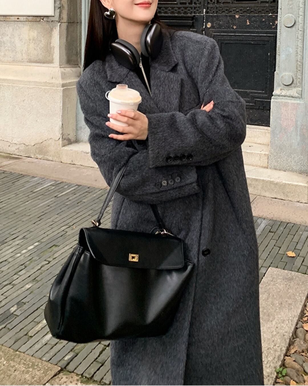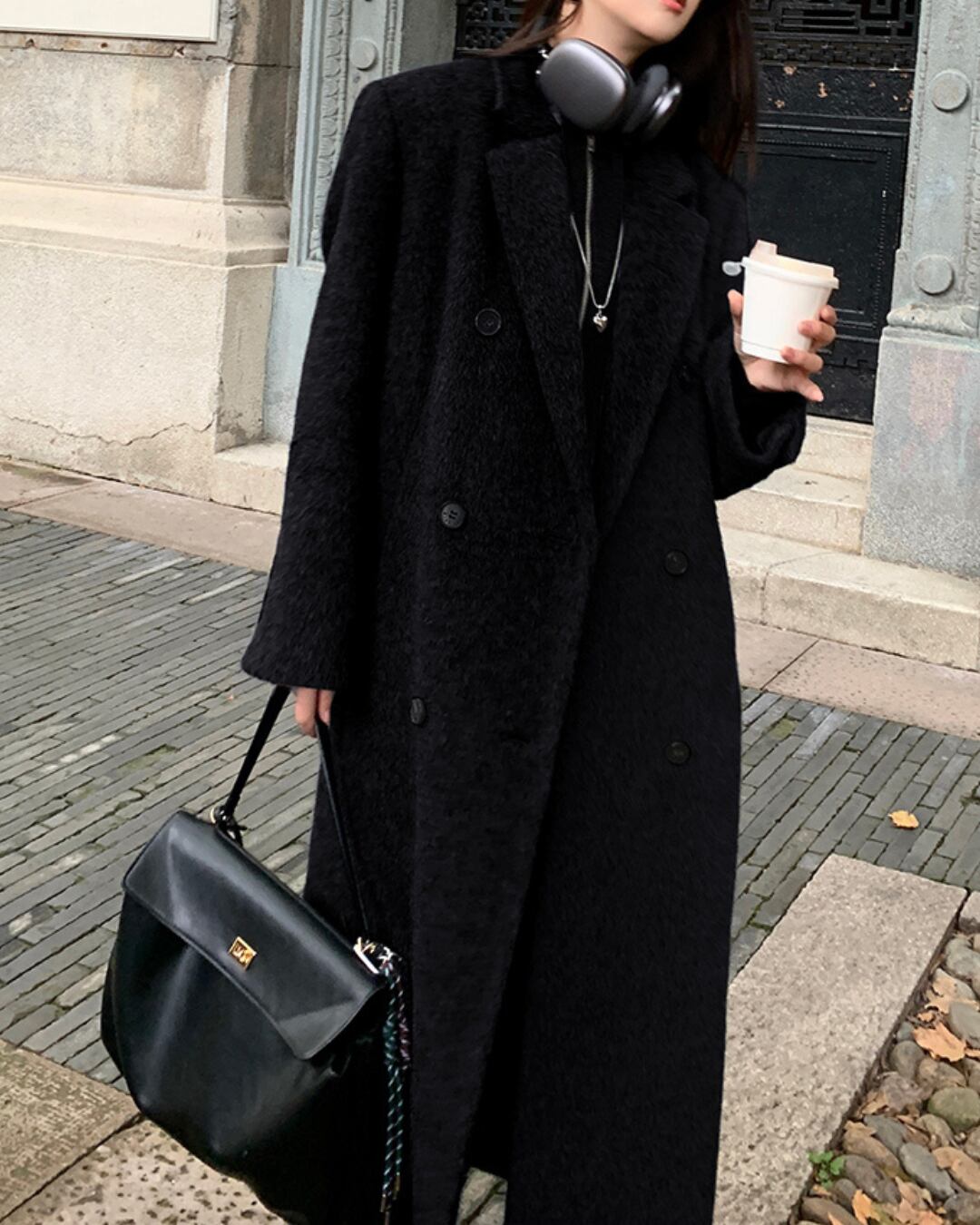Long Length Wool Double-Breasted No Collar Coat S00089