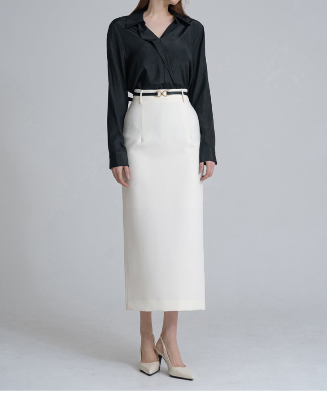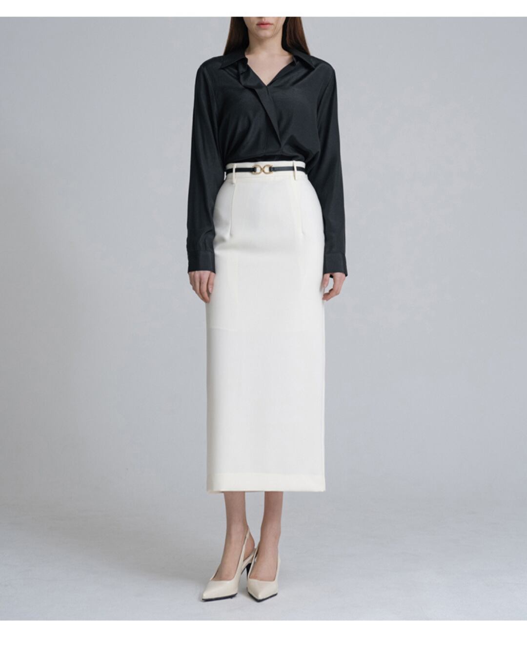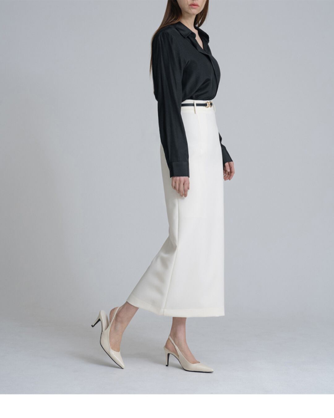 ウエストを強調するハイウエストデザインと、すっきりとしたロング丈が、スタイルアップ効果も抜群。
