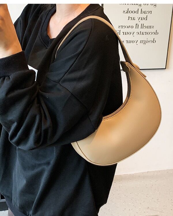 三日月型のフォルムが目を惹く、上品なハンドバッグ。