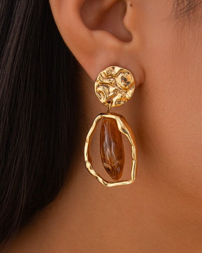 Resin Irregular Shaped Drop Hammered Earrings S00456