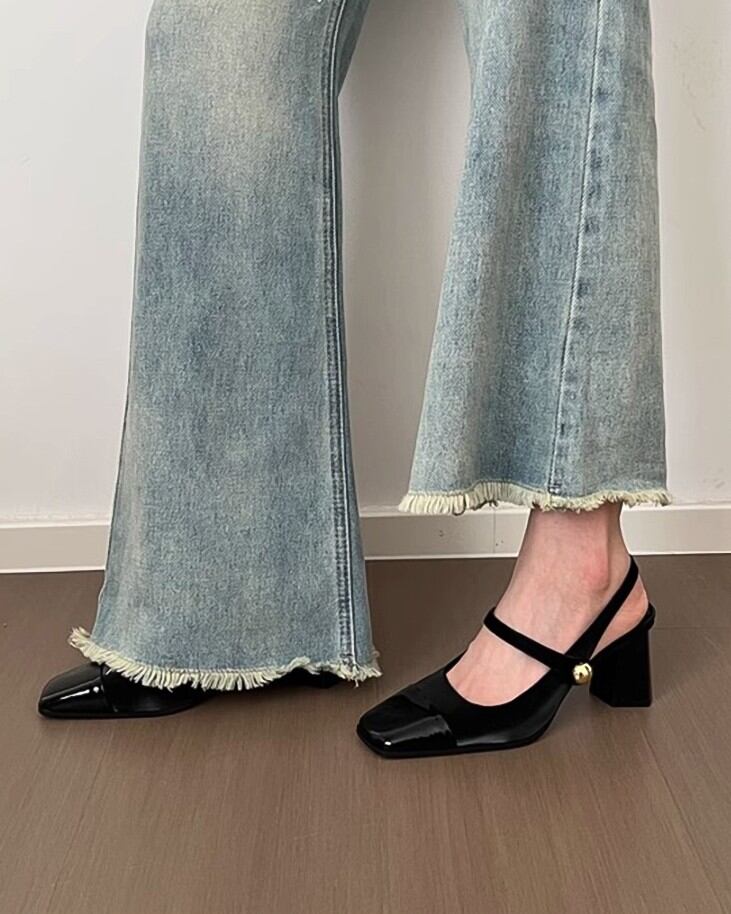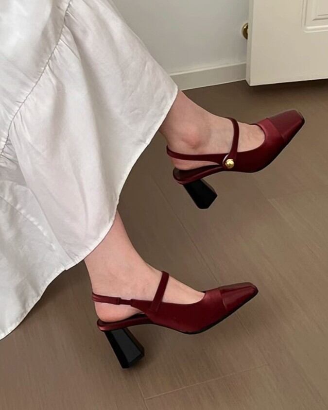 程よい太めのヒールで安定感があり、長時間履いても疲れにくい設計です。