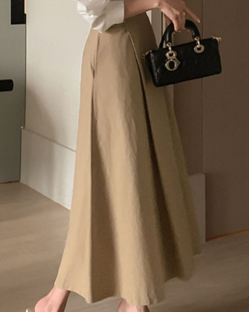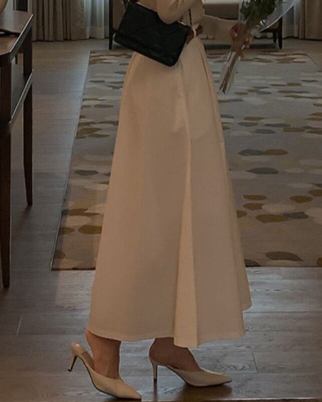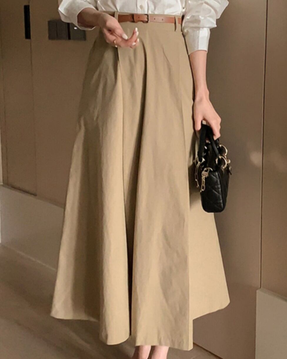 ハイウエストデザインがスタイルアップを叶えるフレアスカート。