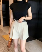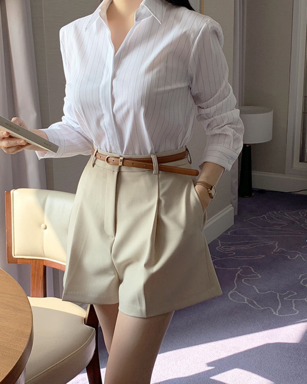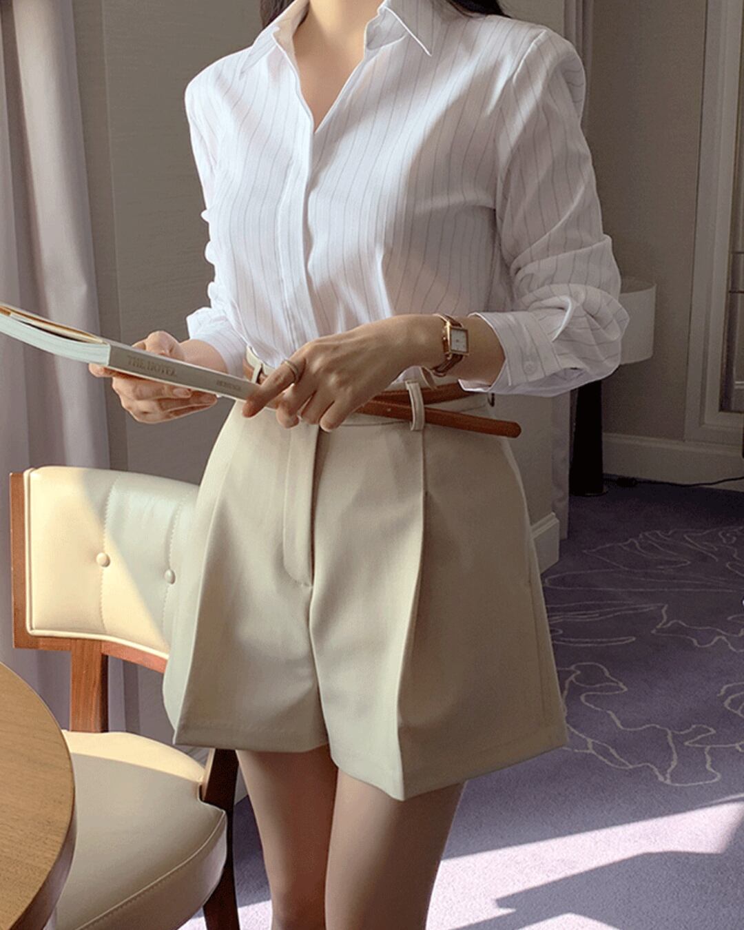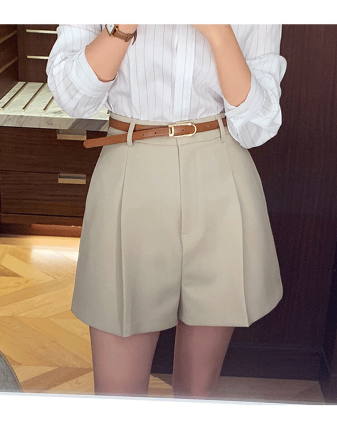 センタープレスデザインが上品さを引き立て、カジュアルなTシャツと合わせても洗練された印象に。