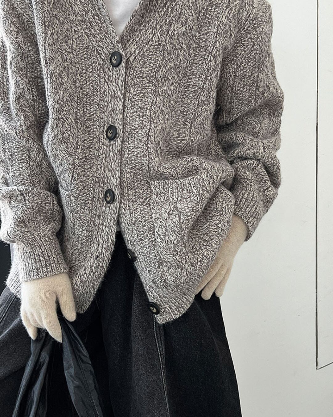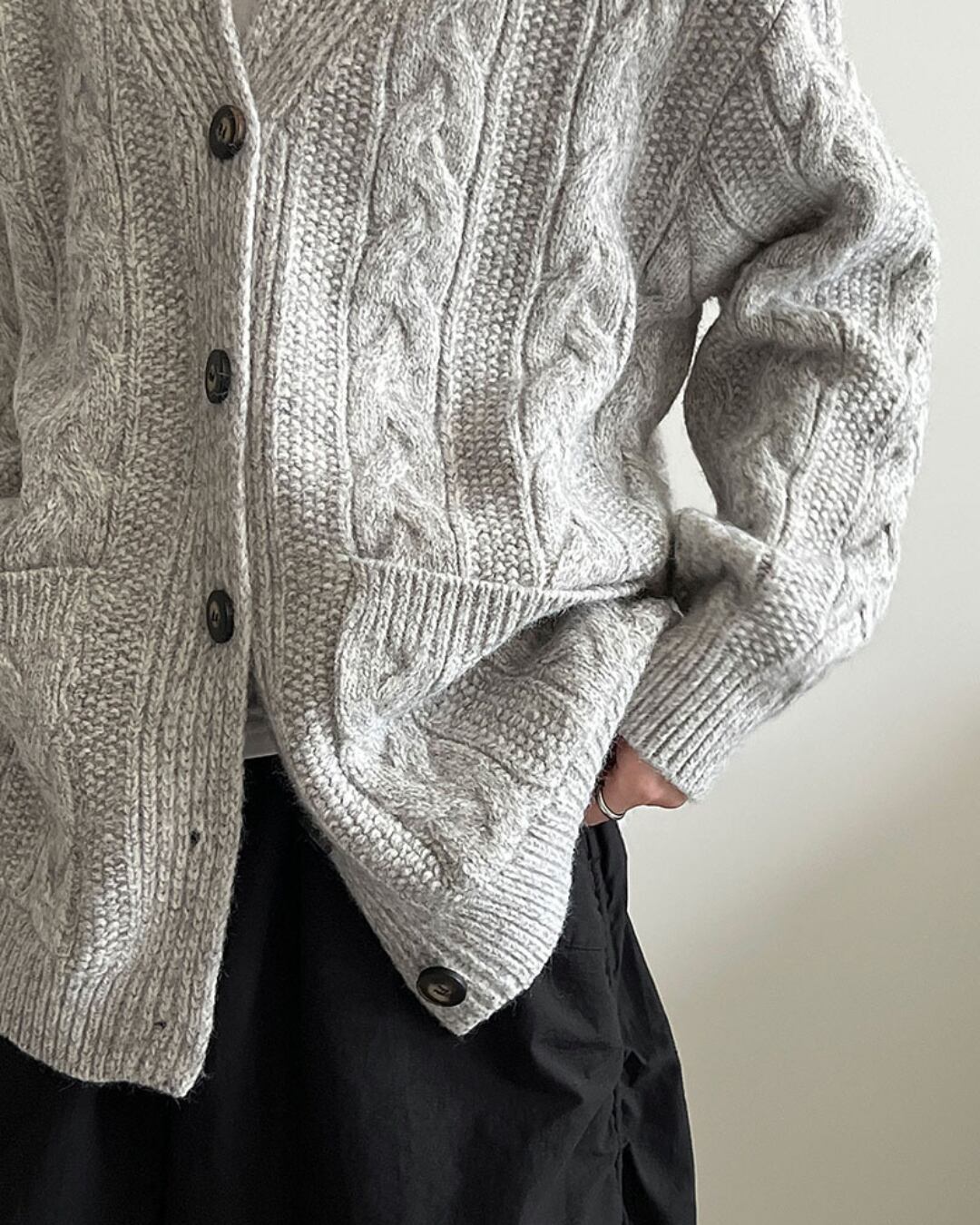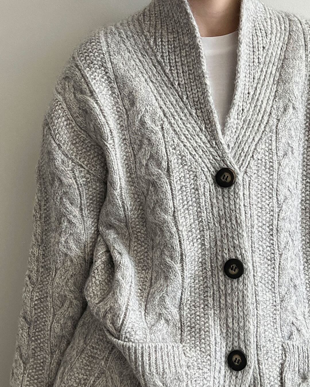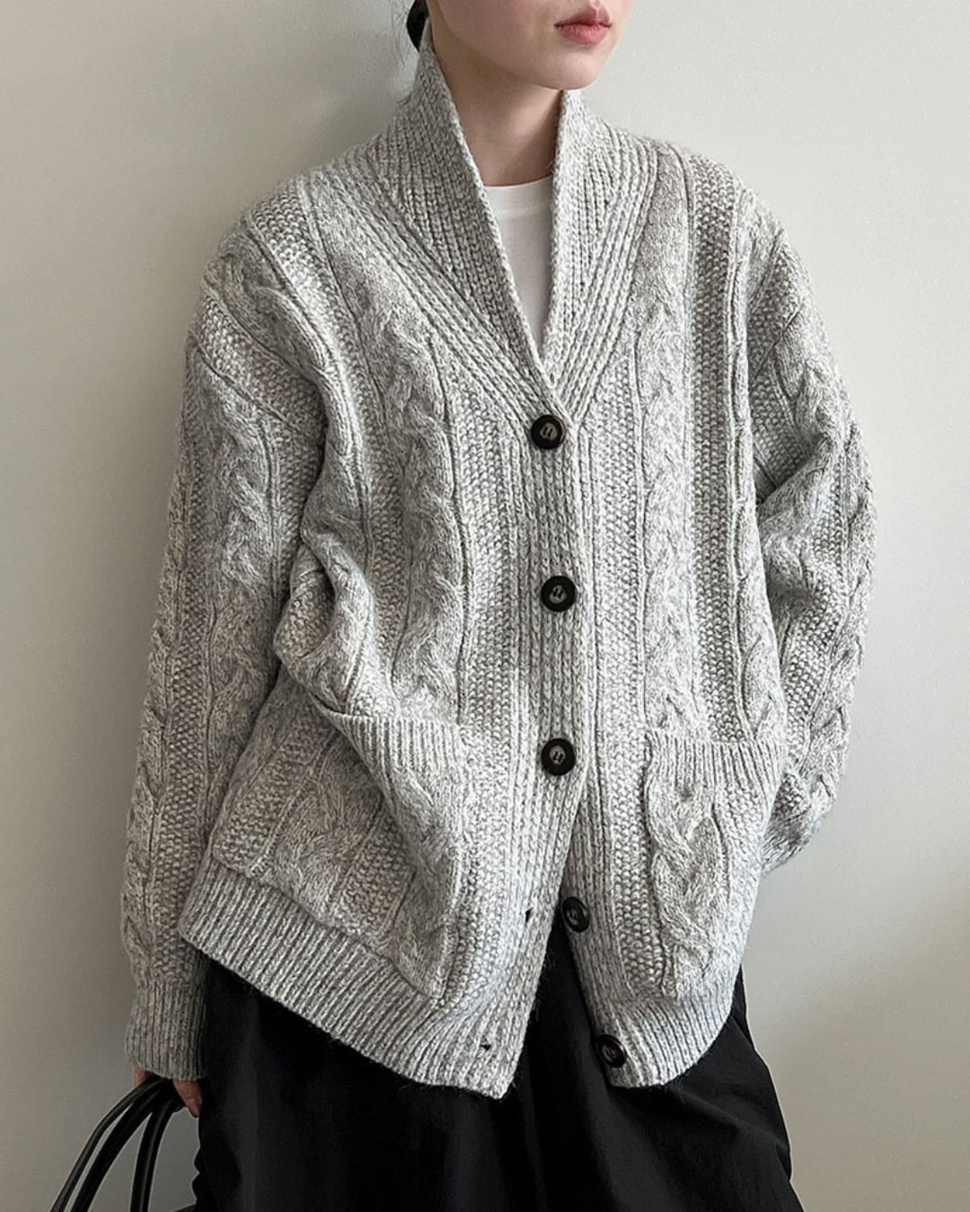 Cable Knit V-Neck Long Sleeve Cardigan S00046