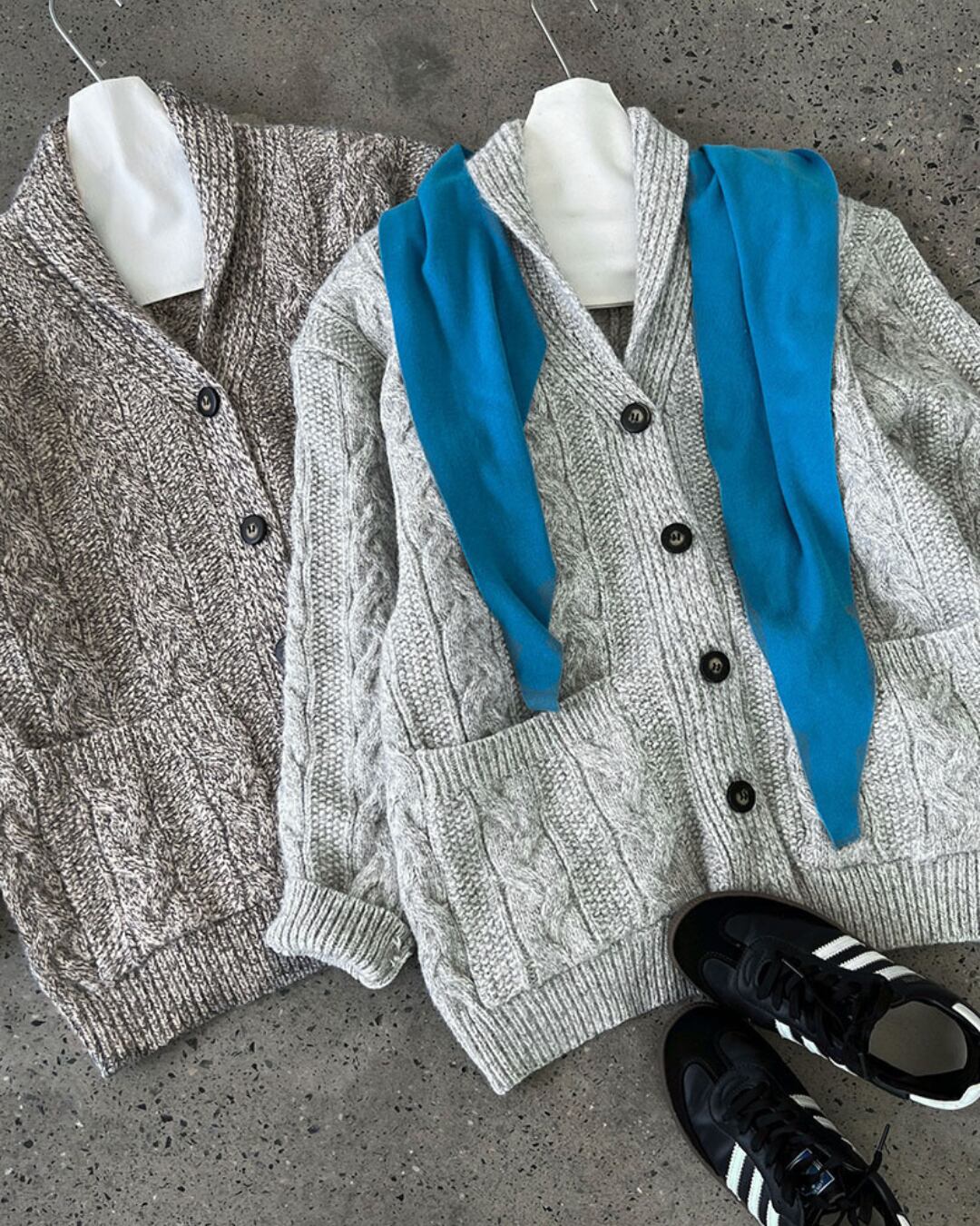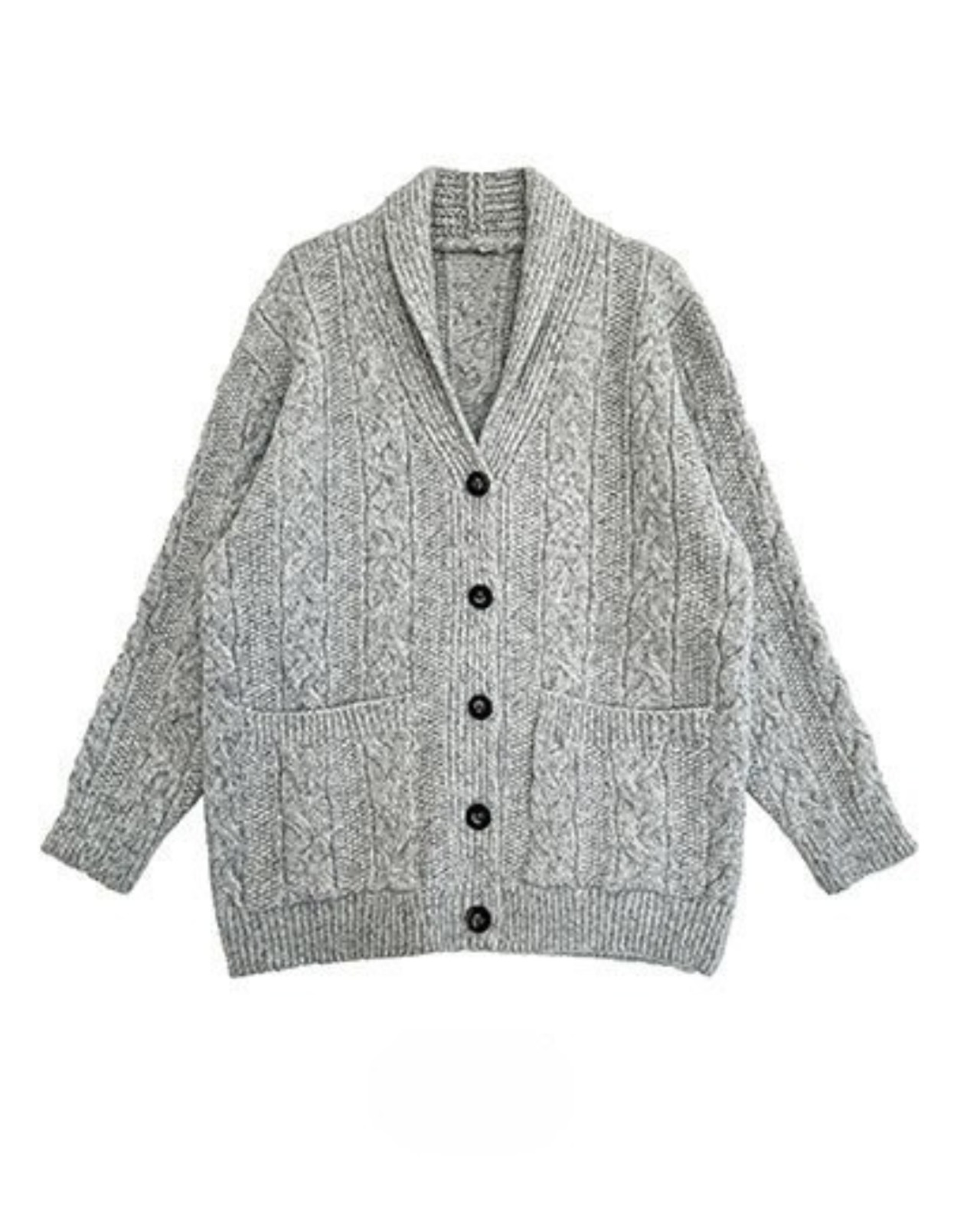 上品なケーブル編みが魅力的で、着るだけでこなれた雰囲気を演出します。