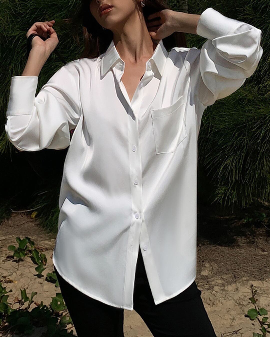 Long-length Oversized Hidden Placket Button-down Shirt S00499