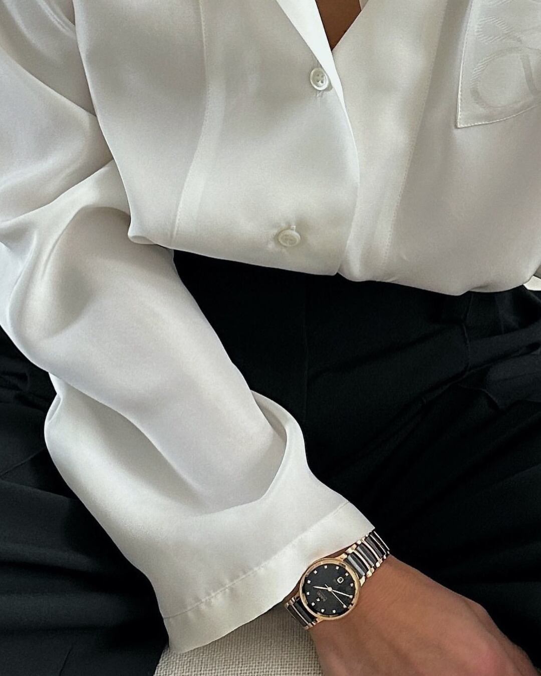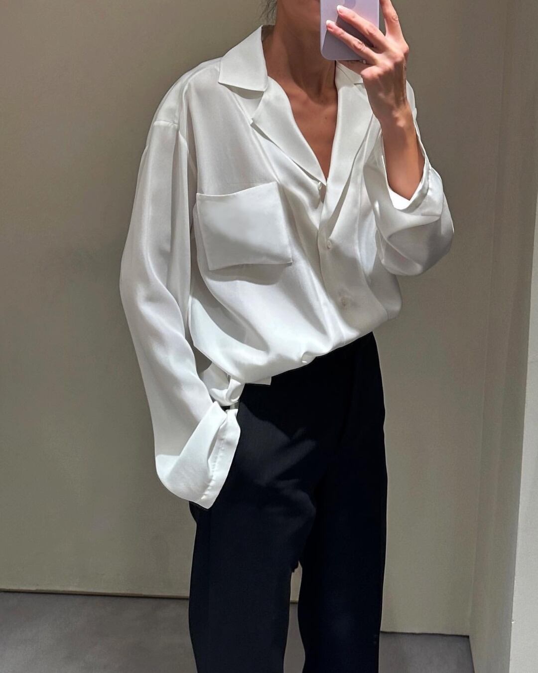 ロング丈のオーバーサイズシャツで、大人の余裕を演出。