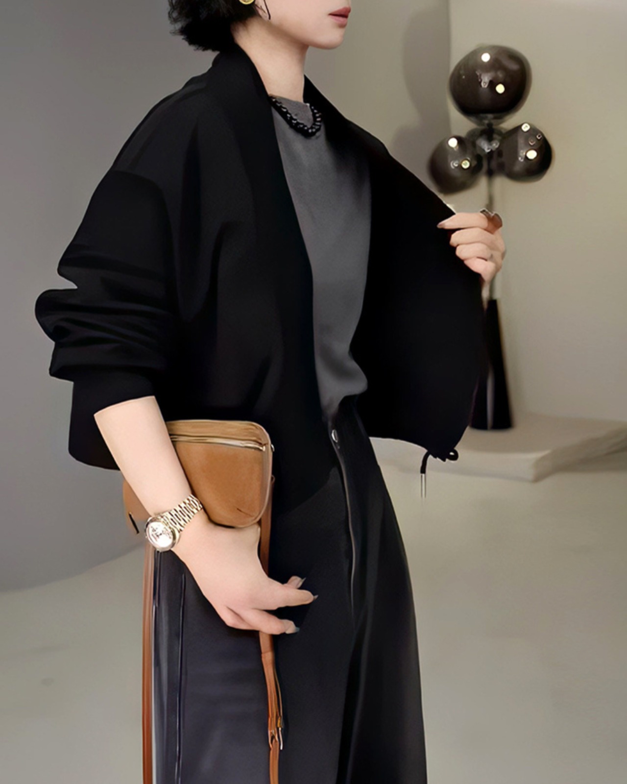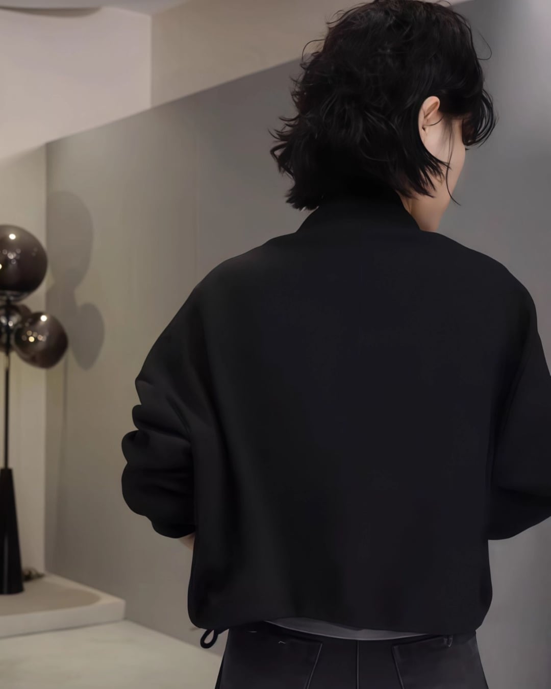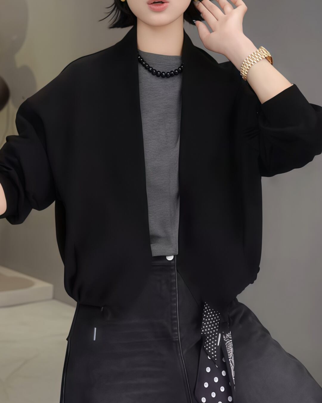 ノーカラーのテーラードジャケットは、すっきりとしたシルエットが魅力。どんなスタイルにも合わせやすく、オフィスシーンからカジュアルな休日スタイルまで幅広く活躍します。