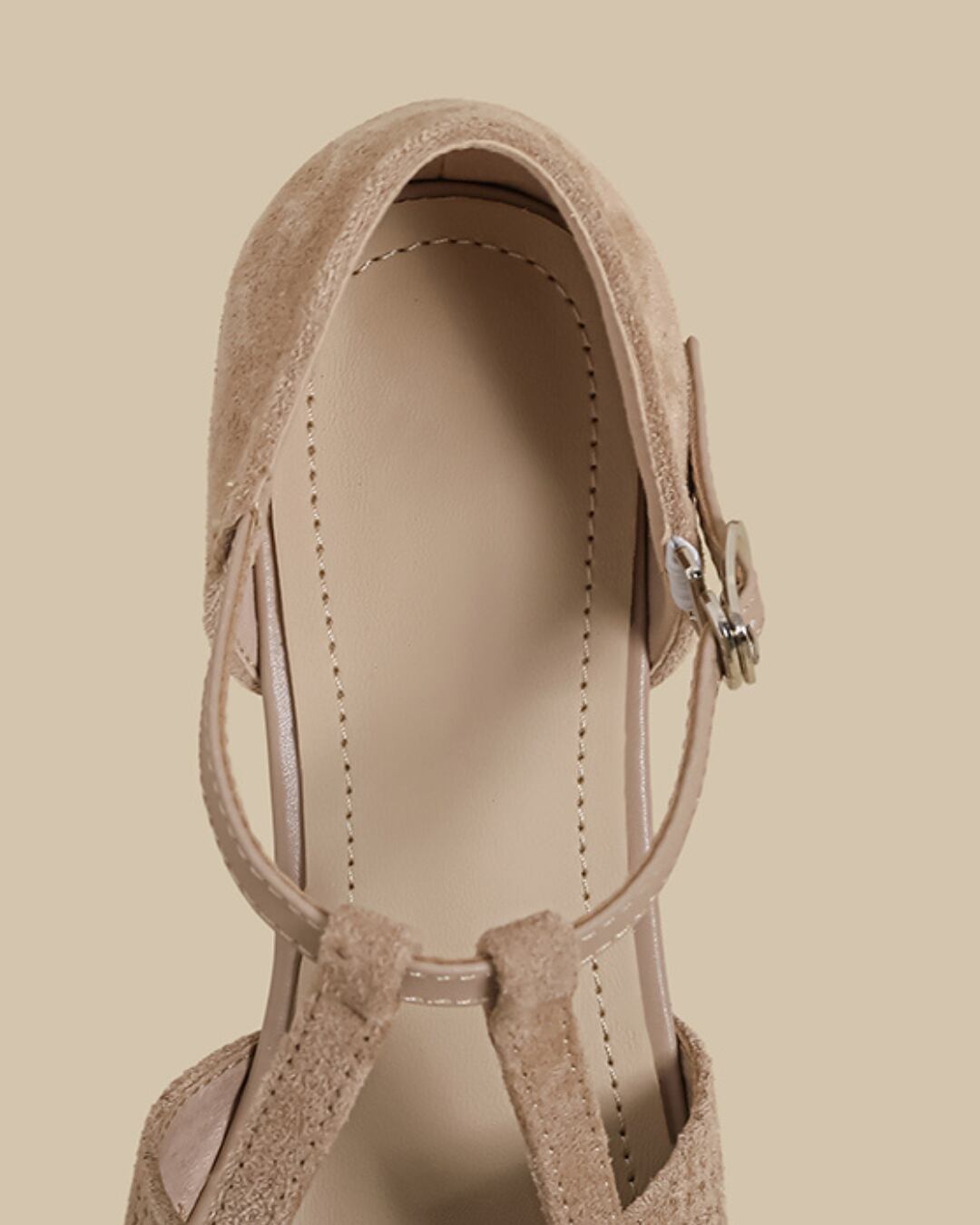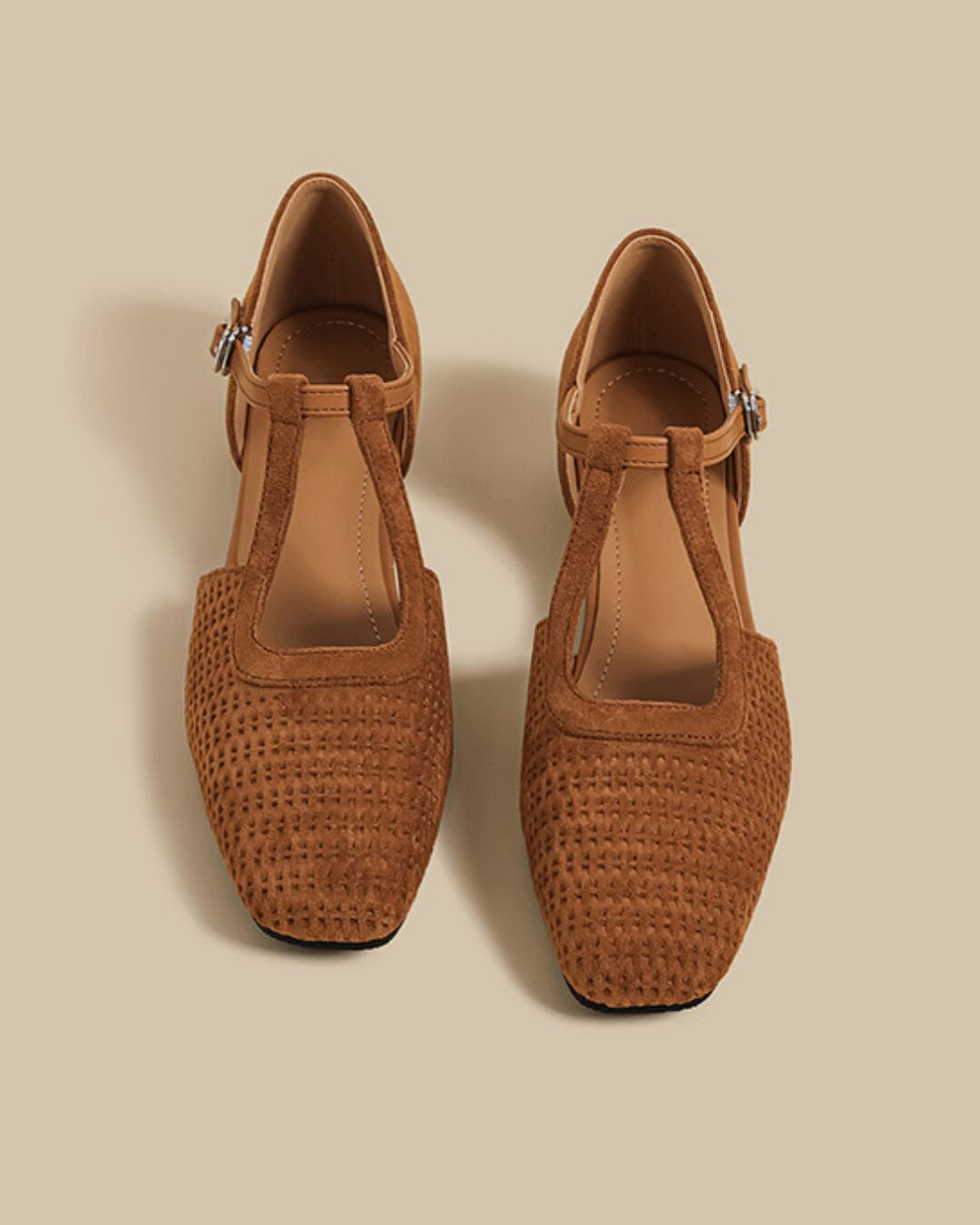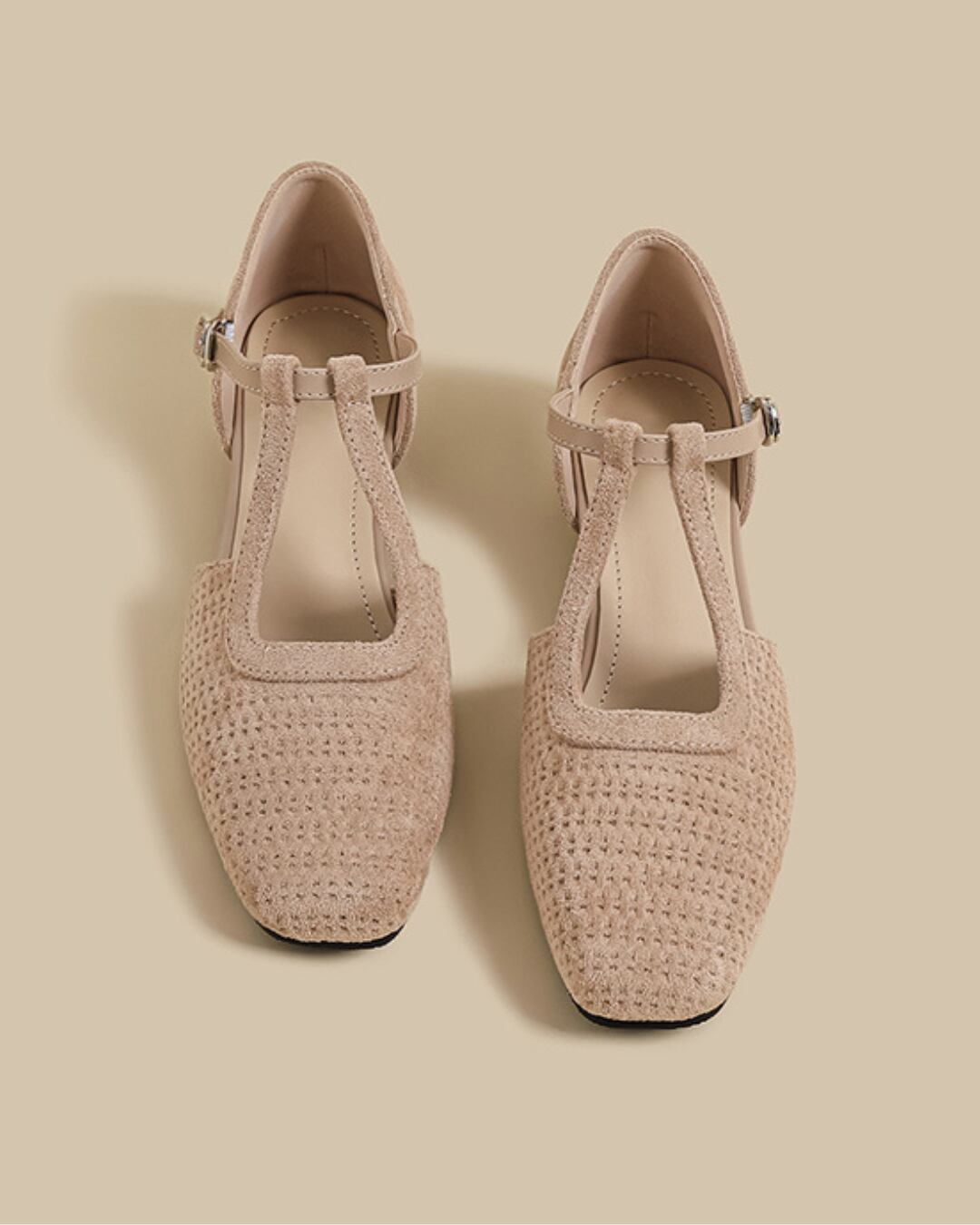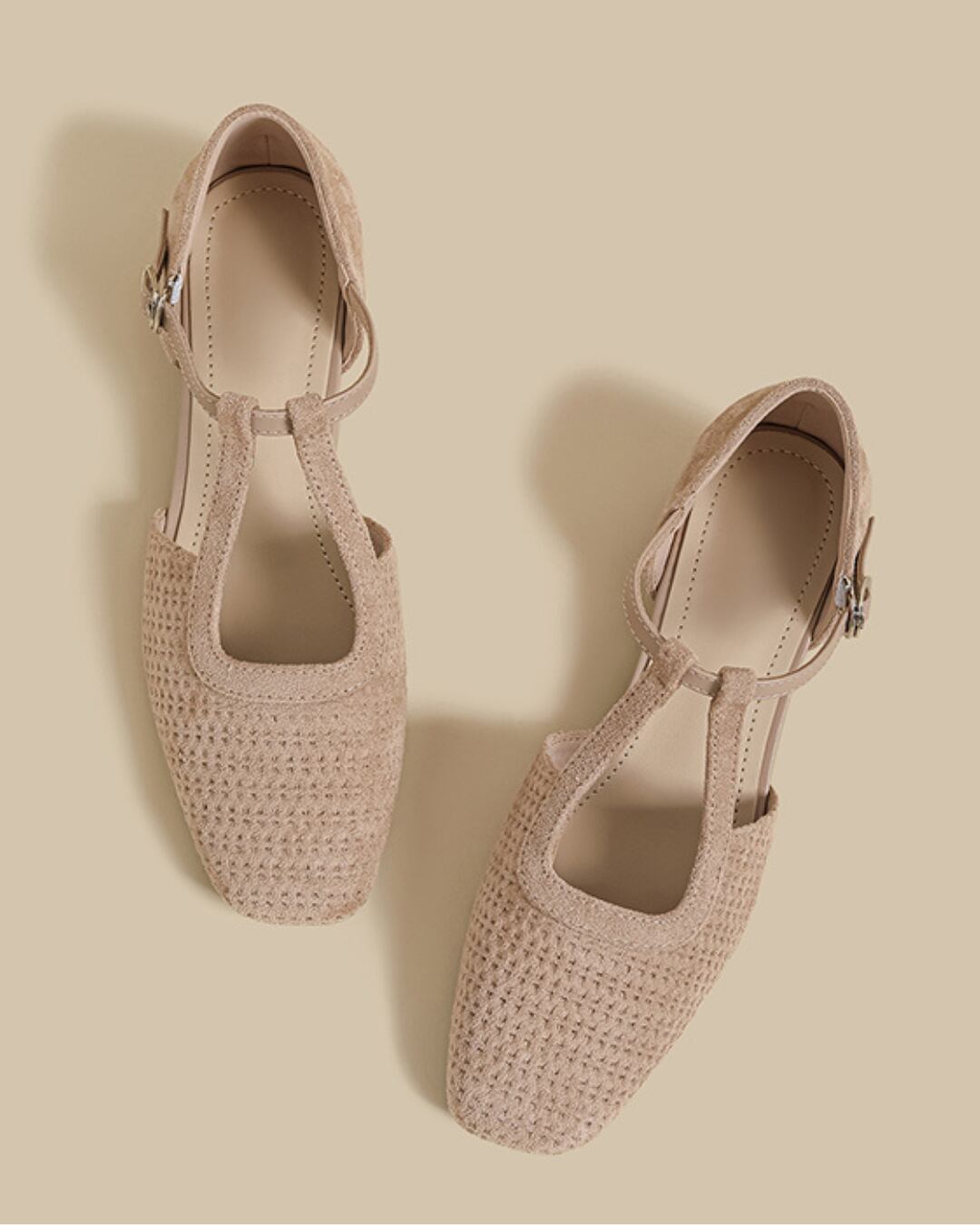 Suede-like Material Mesh Design T-Strap Flat Shoes S00511