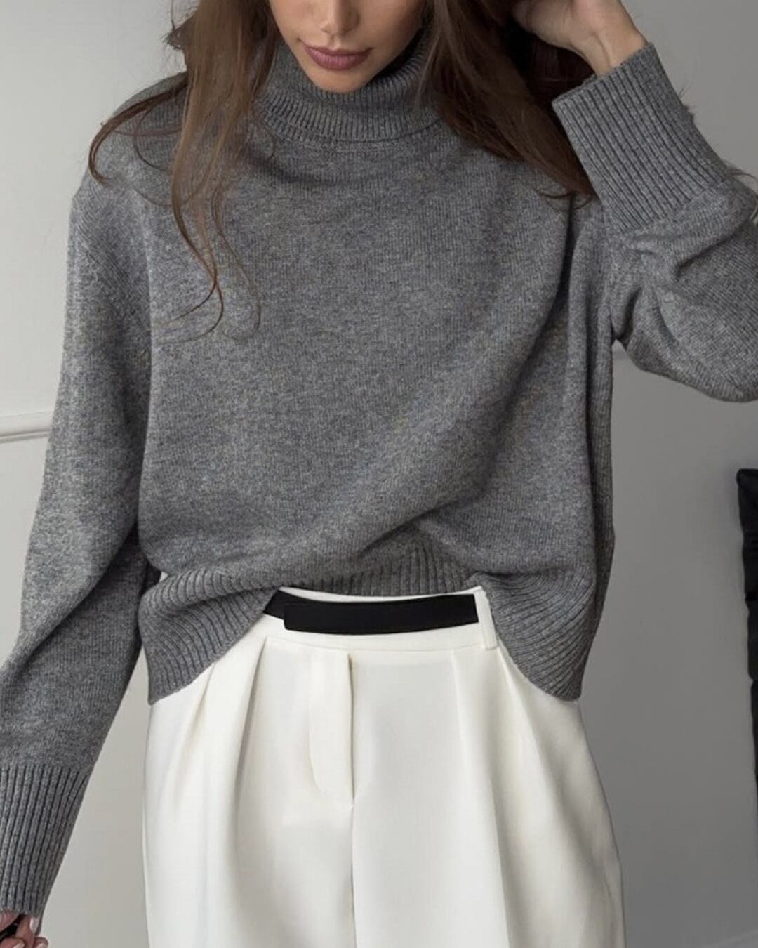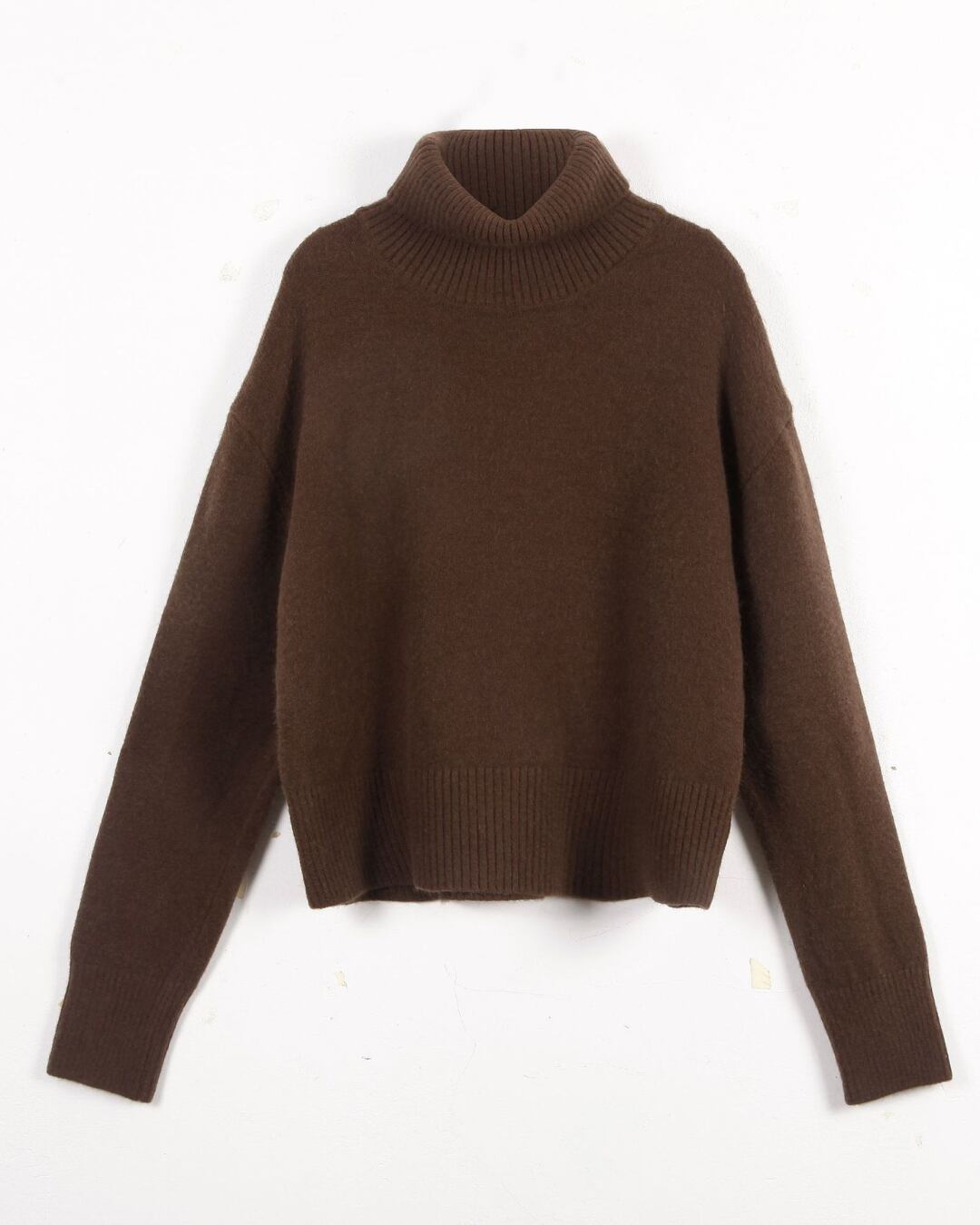 ハイネックのデザインが首元を美しく演出、どんなボトムスとも合わせやすい汎用性の高さが特徴です。