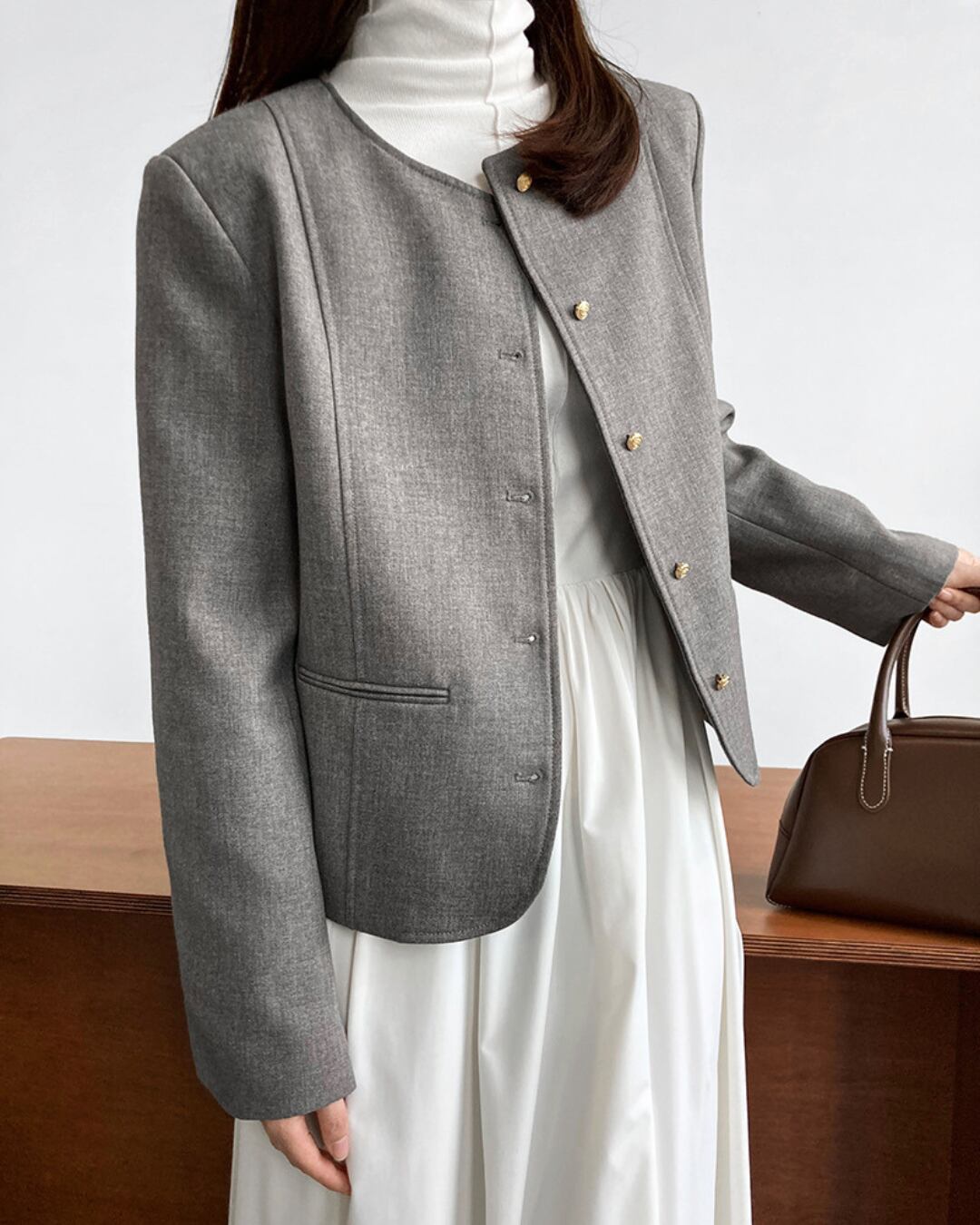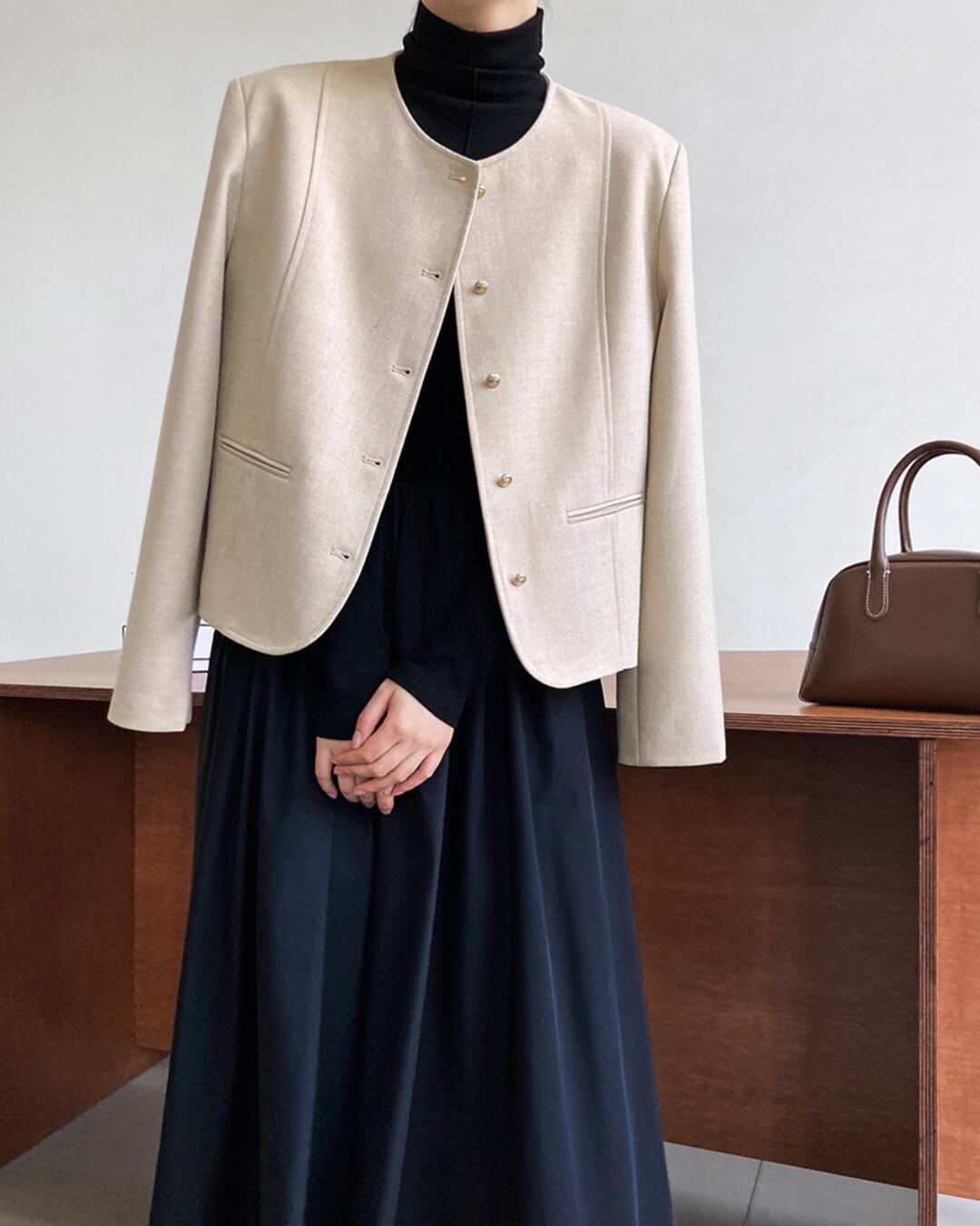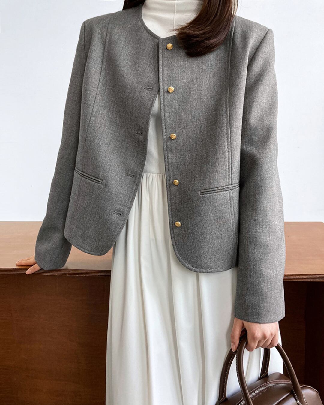 シンプルながら上品なデザインのジャケットは、デイリーユースから特別な日まで、着こなしの幅を広げます。