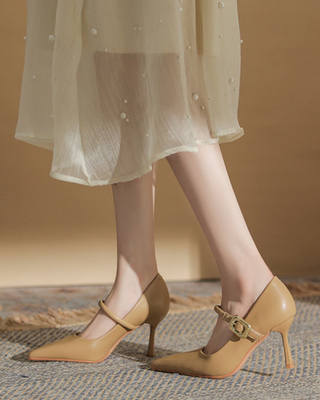 足を美しく魅せるシルエットと、華奢なヒールが女性らしい洗練されたスタイルを演出します。