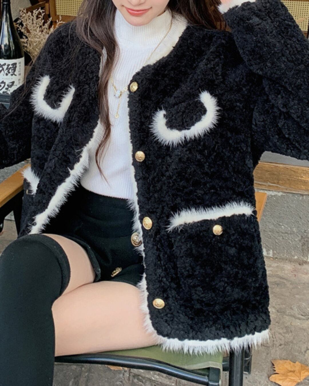 Boa Material Piping Tailored Color Jacket S00001