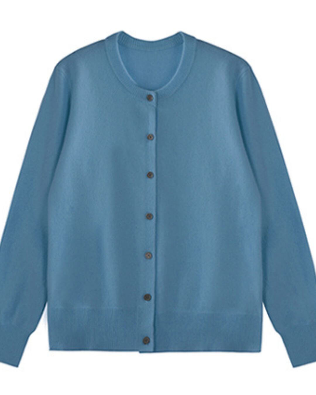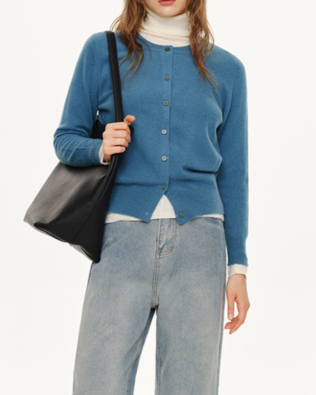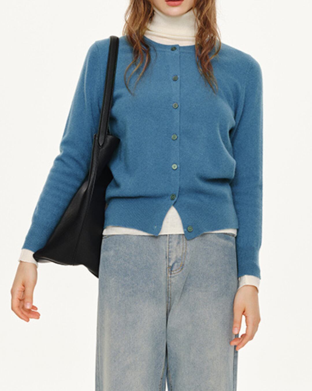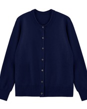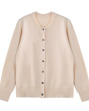ラウンドネックとボタンフロントが上品さを演出。