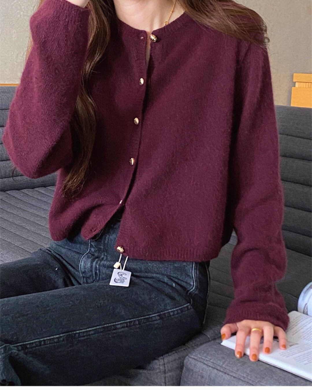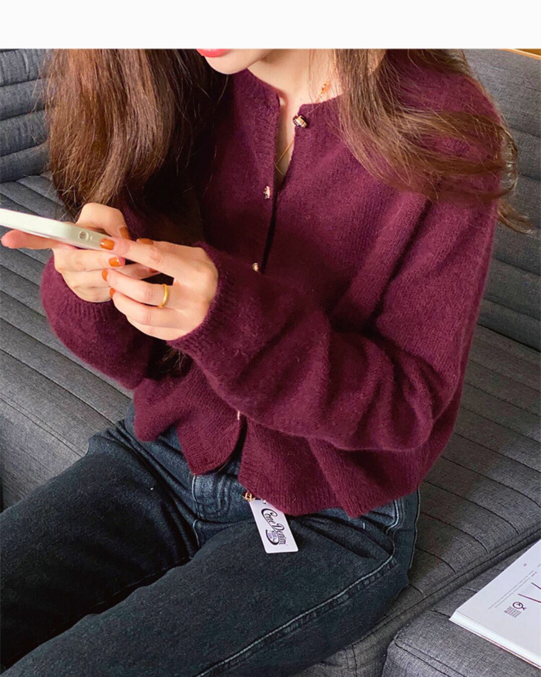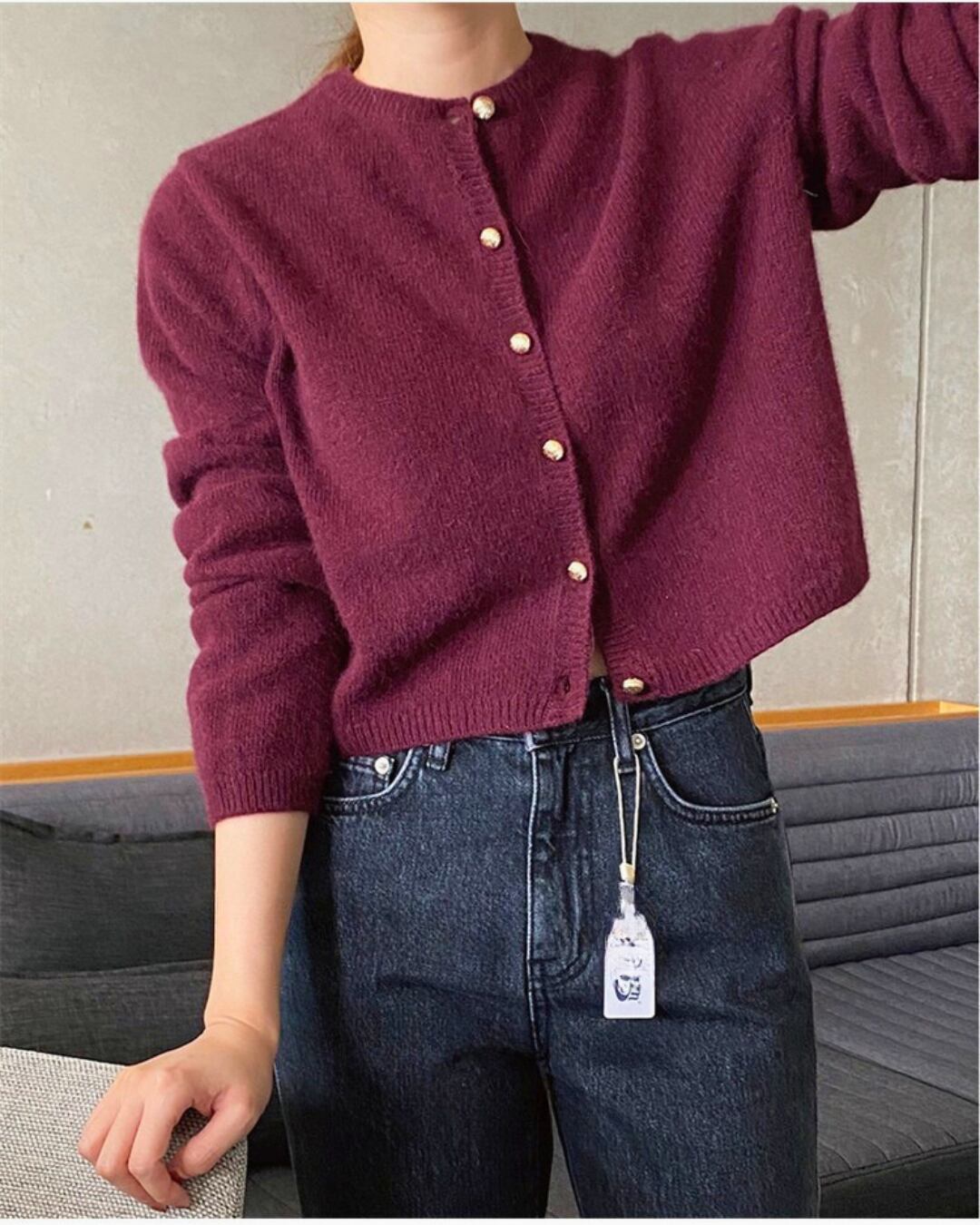 Pearl Button Crew Neck Cropped Knit Cardigan S00560